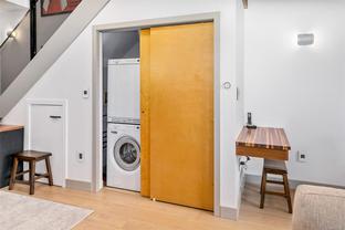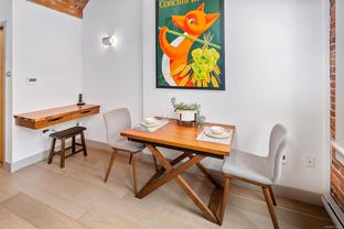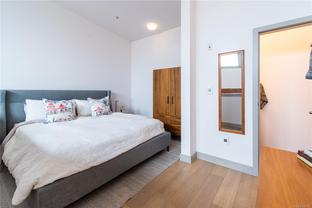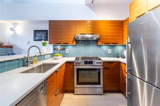 EXCEPTIONAL OFFERING! Experience urban living at The Vogue, a premier steel & concrete heritage conversion in Old Town Victoria. Luxury Heritage Loft featuring 21' ceilings, exposed old-growth beams, brick feature wall & floor-to-ceiling windows w Hunter Douglas remote sheers & blackouts ($7,500 value). Gourmet kitchen w custom cabinetry, stone counter, glass subway tile backsplash & high-end Euro appliances—Bosch D/W ($2,500), Blomberg gas stove ($4,000), Blomberg fridge ($3,000), premium sink & fixtures ($2,000). The open living space is anchored by a new Valor gas FP (2025, $7,500 value) w/ custom tile. Custom lighting ($5K), custom bath cabinetry ($8K), built-in desk ($2,500), in-suite laundry & radiant flrs throughout. Spacious loft w 11' ceilings fits king bed + furniture, w ensuite -convert back to shower. 17' balcony w irrigation. 1 secure parking + storage unit. Steps to shops, cafés, dining & transit. Over $77K in upgrades! Own a luxury loft in a prime heritage conversion!
