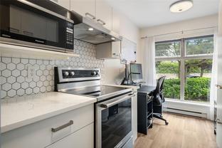 Step into the Victoria market with #203–535 Manchester Rd! This bright and updated 1 bed, 1 bath condo offers over 800 sq ft of well-designed living space with fresh paint, new carpet, and a modern kitchen featuring quartz counters, stainless steel appliances, stylish backsplash, and updated lighting. The spacious bedroom includes a walk-in closet, while the inviting living room with its cozy gas fireplace adds warmth and charm. Relax on your private northwest-facing patio with a peaceful outlook onto greenery on a quiet no-thru street. Secure underground parking, storage locker, and rentable bike storage are included. Steps to the Selkirk Waterfront, Galloping Goose Trail, and downtown. Perfect for first-time buyers or investors. An affordable chance to stop renting, build equity, and start your real estate journey. Don’t miss this opportunity to own in a vibrant, central location!