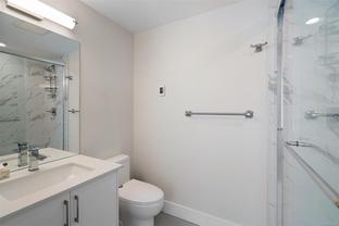 Welcome to The Glenn—a stunning, like-new 2 bedroom, 2 bath corner unit condo located in one of the most convenient and walkable areas of View Royal. Built in 2021 and still under the developer’s warranty, this gorgeous, sun-filled unit features 9’ ceilings, roller shades and NuHeat flooring and both bedrooms have attached baths. The open-concept layout offers seamless flow and modern style, and the unit can even be sold fully furnished—just move right in! Enjoy exceptional building amenities including: Spacious common patio with ample seating and water views, electric vehicle charging in the secure underground parking, bike & kayak storage, plus bike/dog washing station & separate storage. Step outside and you're just minutes from groceries, restaurants, shopping, the E&N Rail Trail, Portage Park, and the scenic Gorge Waterway. Pet lovers will appreciate the strata’s generous policy: 2 pets allowed with no size restrictions.