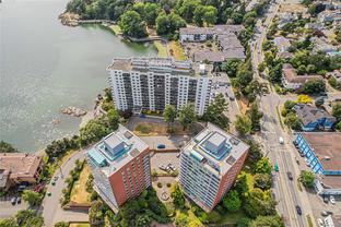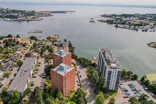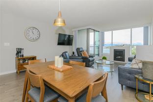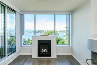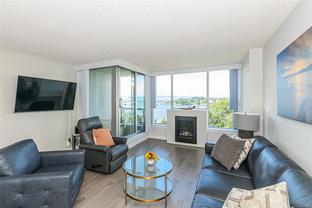 Stunning Southwest Ocean Views! Turnkey, updated and FULLY FURNISHED. This sunny corner condo is ready for you to enjoy breathtaking views of the ocean, harbor, and Olympic Mountains through its panoramic windows. Watch cruise ships, seaplanes, kayakers, and beautiful sunsets every day of the year. This two-bed unit is tastefully furnished with high-quality furniture purchased new just a few years ago. Engineered hardwood flooring, modern kitchen and a cozy gas fireplace create a welcoming ambiance. Sea West Quay is a steel-and-concrete building with a proactive strata. Amenities include secure underground parking, storage, fitness room, workshop, carwash station and rec rooms. Located just steps from the scenic Songhees waterfront walkway, E&N Trail, parks, shops, restaurants and minutes from downtown Victoria, this is the ideal blend of tranquility and convenience. Come and see how you could enjoy a vibrant Island lifestyle! Ready for immediate possession.
