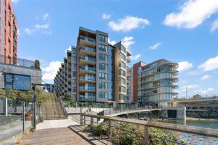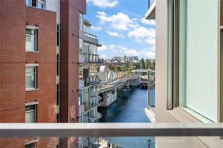 Welcome to The Pearl Residences—Downtown Victoria’s newest icon of true waterfront living. Completed in late 2023, this steel-and-concrete 1-bed, 1-bath home is set in one of the building’s premier locations, perfectly positioned on the sought-after side with breathtaking views of the Inner Harbour and the striking new Johnson Street Bridge. Inside, 9-ft ceilings, radiant-heated bathroom floors, and a spa-inspired walk-in rainfall shower create an elevated sense of comfort. The sleek kitchen with quartz island and integrated cooktop flows seamlessly into a bright open plan and out to your private patio overlooking the water. An upgraded laundry room, independent heat pump with central A/C, secure parking, and storage by the elevator ensure every detail is designed for ease. Residents enjoy a fitness centre, stylish lounge with kitchen, EV chargers, bike storage, and full accessibility—all steps from harbourfront paths, world-class dining, boutique shops, cafés, and historic Chinatown.