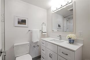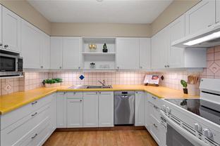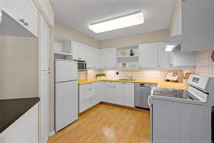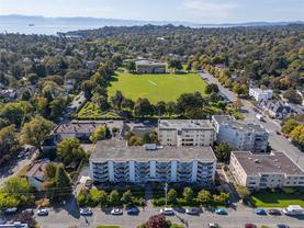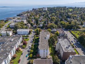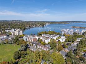 Welcome to 503 – 1148 Goodwin Street, a bright top-floor ocean view condo with over 1,000 sqft of living space in the heart of Oak Bay. This spacious two bedroom home has been refreshed with two brand-new bathrooms done by MAC Reno Design Build and new paint throughout, offering a move-in ready space with timeless appeal. The unit includes one parking stall and extra storage, ensuring convenience and functionality. The building features a private courtyard with BBQs, perfect for gatherings with friends and neighbours. Just steps away, enjoy the best of Oak Bay living—the Oak Bay Marina for a morning coffee by the water, or an evening at the Oak Bay Beach Hotel, home to the iconic Snug Pub and Faro Pizza. Surrounded by parks, beaches, and charming village shops, this location truly captures the essence of coastal living. An exceptional opportunity to own in one of Victoria’s most sought-after neighbourhoods.