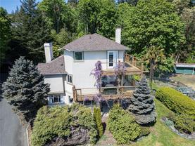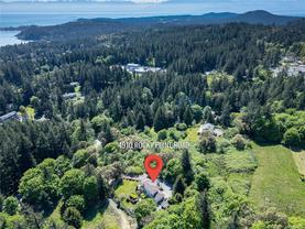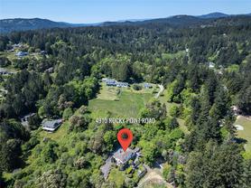 Nestled on nearly 2 acres with sweeping ocean, city, and Mt. Baker views, this updated 5-bedroom, 4-bath home offers over 3,200 sq. ft. of finished living space plus multiple outbuildings. The versatile layout includes a bright 2-bedroom in-law suite with its own entrance. The main floor features a modern kitchen with granite counters and premium appliances, dining area, living and family rooms, and a workshop. Upstairs, the primary suite offers a 3-piece ensuite and walk-in closet, plus two more bedrooms and a full bath. Outdoor amenities include landscaped grounds with a pond and waterfall, gazebo, horse barn, chicken coop, and RV parking. Comfort is ensured with a heat pump, propane heating, wood stove, and A/C. Enjoy Metchosin living with Witty’s Lagoon and Devonian Regional Parks minutes away, Westshore Town Centre nearby, and schools including WestMont, Hans Helgesen, Royal Bay Secondary, and Pearson College all within easy reach.