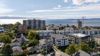 Experience the best of James Bay living in this stunning 3-bed + den, 4-bath townhouse. Bathed in natural light, the main level features an open-concept design w/ high-end finishes, a cozy gas fireplace & classic wainscoting. French doors open to a covered patio w/ southern exposure & a gas hookup, perfect for outdoor dining, evenings by a firepit, or casual gatherings. The gourmet kitchen boasts granite countertops, solid wood soft-close cabinets, pullout pantry drawers, a convection range & stainless steel appliances. Upstairs, the luxurious primary suite offers a spa-inspired ensuite with separate shower & tub/walk-in closet/private patio, alongside a 2nd bedroom, bathroom & separate laundry. The lower level features 9-ft ceilings, additional bedroom, bath & versatile entertainment/den area / custom cabinetry & Murphy bed. A Level 2 car charger is included. Just steps from the Dallas Road Waterfront, Holland Point Park & Beacon Hill Park, with James Bay Village for shopping nearby.