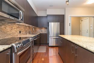 Popular Bear Mountain Getaway! Step into your bright and spacious turn key home in this vibrant community at Bear Mountain. Just bring your suitcase! If this is your second home away from home, it doesn't get much easier, just bring your suitcase! . Immaculate 2 bed plus office, 2 bath with wrap around south and east decks overlooking the golf course. One owner home since built in 2007, enjoy the gracious efficient layout with no wasted space, great kitchen with open dining and living areas, and built in desk in office. Lovely primary suite with ensuite bath and good separation between 2nd bedroom. Being a corner suite, the views and natural light are amazing. This world renowned resort style community is 20 min from Victoria, 10 min to all amenities and shopping, and is home to two 18 hole golf courses and activity centre with heated outdoor pool, hot tub & gym, a spa and year round tennis. Hiking and mountain bike riding with loads of trails and lakes nearby. Many custom features. Great location to get up and down the island too. Secure underground parking and separate storage. Pets and BBQ's allowed.