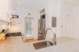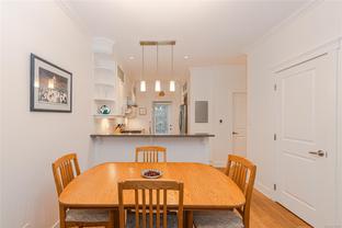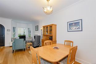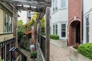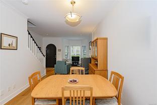 Situated in James Bay directly across from Beacon Hill Park, this 3-bedroom, 3 bath brownstone-style townhouse blends comfort and sophistication across three levels while providing a quiet and private setting. The open-concept main floor highlights a bright living and dining area with electric fireplace, newly renovated kitchen featuring quartz countertops and stainless steel appliances, new engineered oak flooring, and seamless flow to a private east-facing patio. Upstairs, two well-proportioned bedrooms share a full bathroom, while the top floor is devoted to an expansive primary suite with walk-in closet and updated ensuite. Built in 2009 and impeccably maintained, recent updates also include renovated bathrooms and new carpet throughout. Secure underground parking with a storage locker, and EV charging access add convenience, while the unbeatable location offers walkable access to the Inner Harbour, Parliament, restaurants, cafés, groceries, and the scenic Dallas Road waterfront.