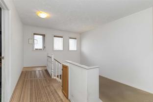 End unit townhome backing onto a large, serene green space—perfect for those seeking privacy and potential. This 2-bedroom, 3-bathroom townhome is ready for your design ideas and updates. The upper level features a spacious primary bedroom with an ensuite, a second bedroom, a second bathroom, storage closets, and a bright loft area ideal for a home office. The lower level features an original kitchen that opens to a cozy dining area, along with a spacious living room. Enjoy walkout access to a private patio and the expansive green space beyond. Convenient single-car garage and driveway parking, along with ample visitor parking. Pet-friendly and rental-friendly, this home is located close to parks, amenities, transit, and Royal Roads University. An excellent opportunity to create your dream home in a well-located, quiet community. Several photos have had personal belongings digitally removed.