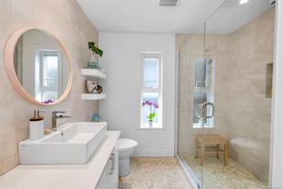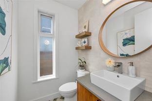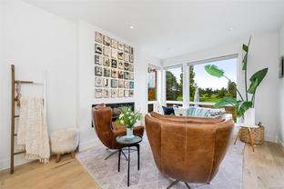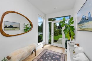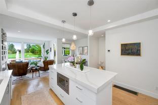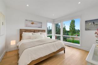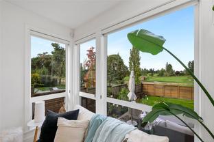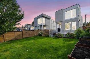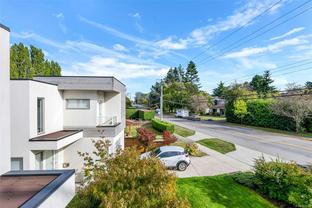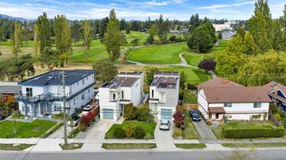 Stunning contemporary home crafted by Zebra Designs, backing onto the Gorge Vale Golf Course with expansive serene fairway views. Spacious and filled with natural light, featuring 4 bedrooms & 4 bathrooms, incl. a 1-bedroom suite perfect for guests or added income. Every detail is luxurious & designer-inspired, making it a true showcase of modern elegance. Highlights incl. oversized windows & tall ceilings, gourmet kitchen w/3" granite counter top island, n/gas cooktop, floor to ceiling cabinets & premier appliances. Heat pump w/AC, on-demand h/water and luxurious finishes throughout. Master suite w/ views, large walk-in closet and a spa-like ensuite w/heated floor. Curated mature gardens w/irrigation, fenced backyard, large entertaining patio overlooking the fairways. Beautiful décor, lighting, flooring, tile work & window treatments all add to the refined atmosphere. Minutes to the Gorge Waterway, parks & downtown, this home offers the perfect blend of design, comfort, & lifestyle.