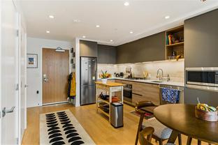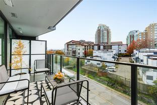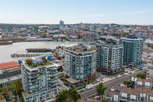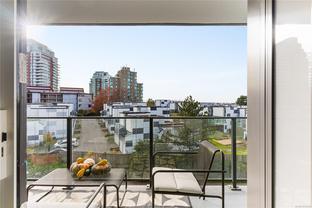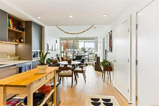 Welcome to coveted Dockside Green by Bosa Development in this bright and modern 1BED, 1BATH condo spanning 590 sq ft, located at 369 Tyee Road. Designed to maximize space and natural light, the home features a spacious southwest-facing balcony with views of the city —perfect for seamless indoor-outdoor living. The sleek kitchen showcases Italian cabinetry and premium European appliances, blending sophisticated design with energy efficiency. West Coast materials and natural finishes create a stylish and welcoming atmosphere. Situated in the heart of Vic West, you're just steps from beloved local spots, the Songhees Walkway, and the Galloping Goose Trail, with downtown Victoria only minutes away. Residents also enjoy access to an array exclusive rooftop amenities, including shared dining pods, a fire pit, secure bike storage, and a fully equipped fitness centre.