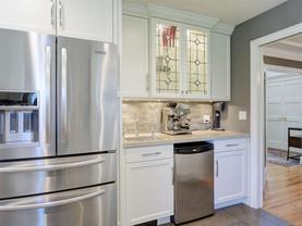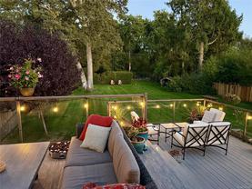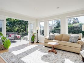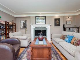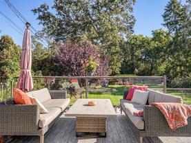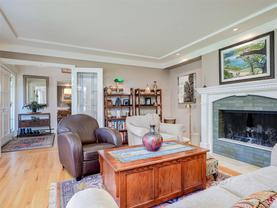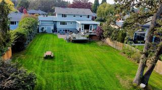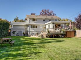 Backing onto the woodlands of the ninth tee at Uplands Golf Course, this beautifully updated 4,000 sq. ft. Cape Cod–inspired character home sits on a sunny, private, and fully fenced 16,800 sq. ft. lot. The main floor is perfect for entertaining with a formal living room featuring a wood-burning fireplace, elegant dining room with custom built-ins, an updated kitchen, and a bright family room. French doors open to expansive decks and a wide-open lawn ideal for outdoor living. Upstairs, a striking staircase leads to three bedrooms, two baths, and a laundry room. The primary suite offers a modern ensuite, serene yard views, and a private south-facing deck. The lower level includes a media room, guest bedroom, and a bright one-bedroom suite with its own kitchen. Upgrades include natural gas heat, hot water on demand, a Wolf cooktop, double Bosch ovens, gas fireplace, and a heat pump that cools the upper floor. Additional features include a home office, workshop, and large garage—simply move in and enjoy this cherished family home.
