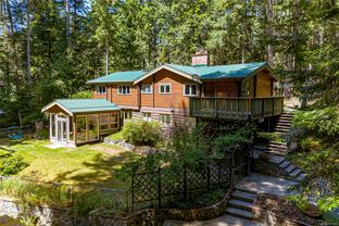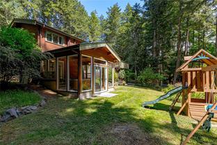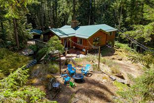 Come and discover this private Metchosin retreat, on over 2 acres of forested beauty with a seasonal stream and the timeless character of a Pan-Abode style home. With 4 bedrooms and 3 baths across approx. 2,400 sqft, this inviting family residence offers wood-clad walls, vaulted ceilings, and spaces that radiate warmth and charm. Gather in the glass-enclosed hot tub room, relax on the deck surrounded by nature, or explore the grounds and outbuildings including a powered workshop, chicken coop, shed, and firewood storage. Recent upgrades, including a heat pump, 200A electrical, and generator system bring modern comfort to this West Coast sanctuary. The property backs on to a 160 acre nature preserve, providing a feeling of endless greenery. Here, mornings start with birdsong, evenings end under starlight, and every day offers the chance to slow down and connect with what matters most.