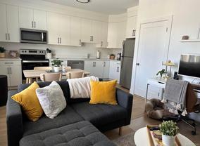 Spanning over 3,000 sq. ft. with a legal one-bedroom suite above the garage, this stunning 2022 built home offers space, quality, and thoughtful design throughout. The grand entry welcomes you with soaring 18-foot ceilings, leading to an open-concept main floor where the kitchen truly shines — featuring an oversized island, Fisher & Paykel appliances, a stunning walk-in pantry, and a dining space that overlooks the tidy, landscaped backyard. Enjoy the covered patio — perfect for year-round entertaining or relaxing evenings outdoors. Built-ins and warm wood accents throughout add to the home’s charm and craftsmanship. Upstairs you’ll find a flexible loft area, three generous bedrooms, and a spacious laundry room. The primary suite impresses with a spa-inspired ensuite and walk-in closet. Complete with a two-car garage, ample driveway parking, and efficient heating via a heat pump, this home is located in a vibrant and growing community — steps to Olympic View Golf Course, a brand-new elementary school, and just minutes to the seaside amenities of Royal Bay.