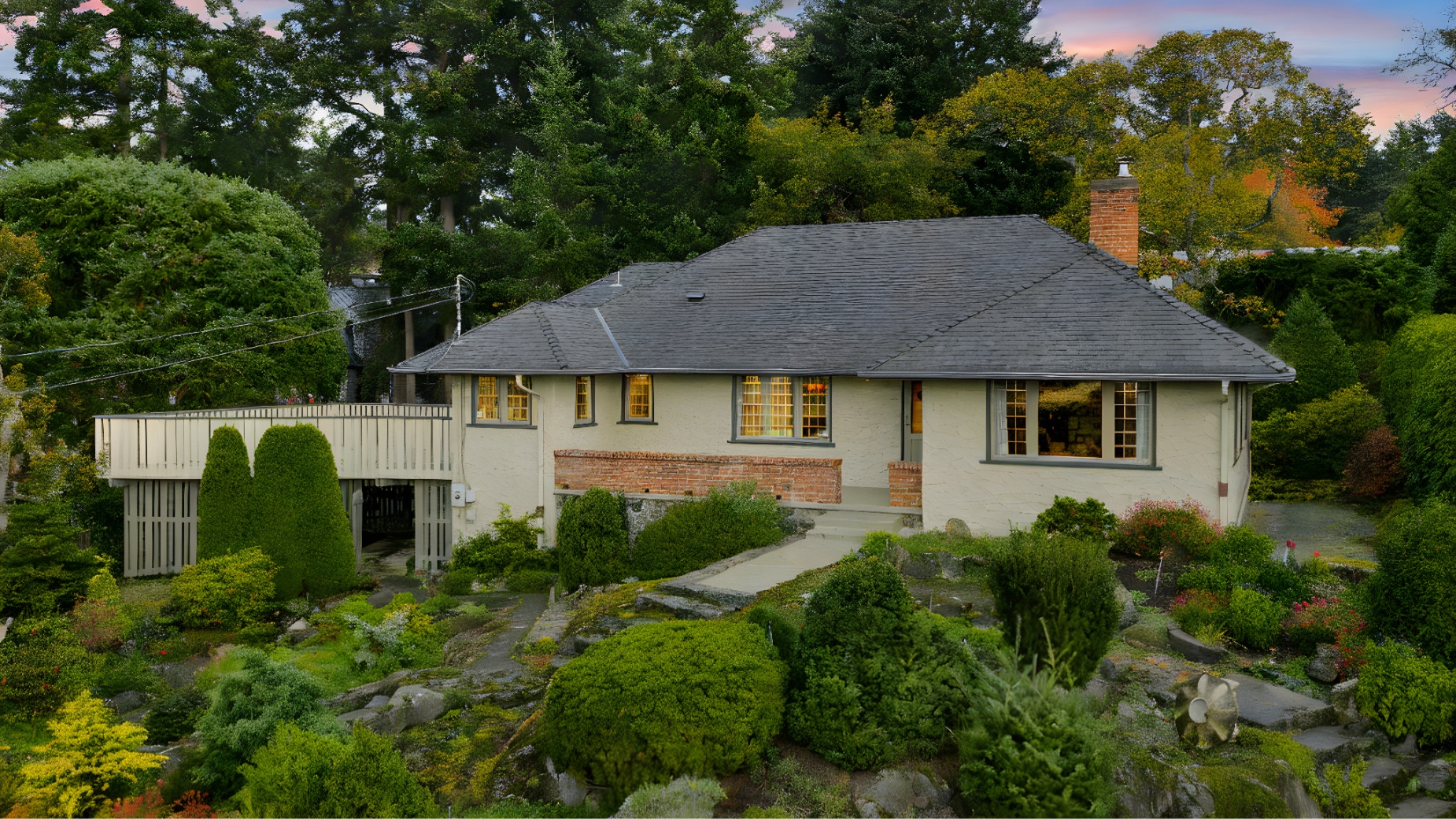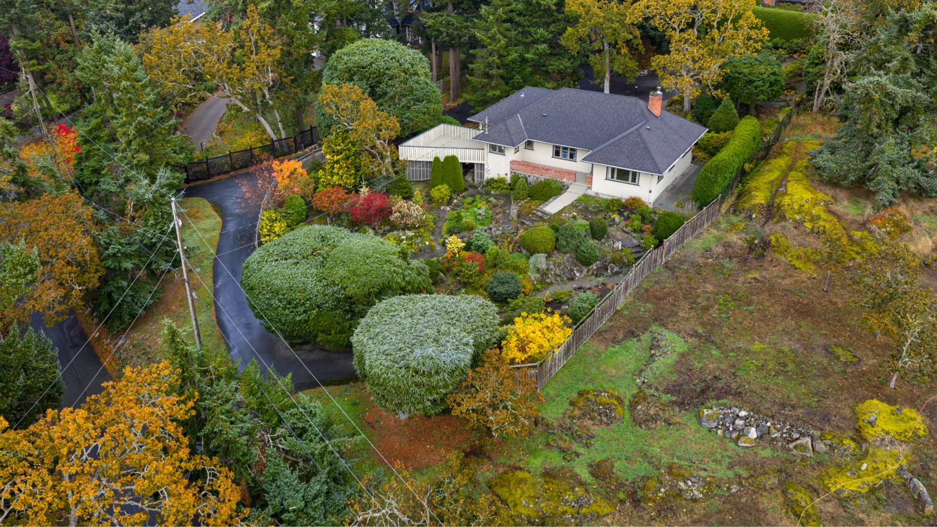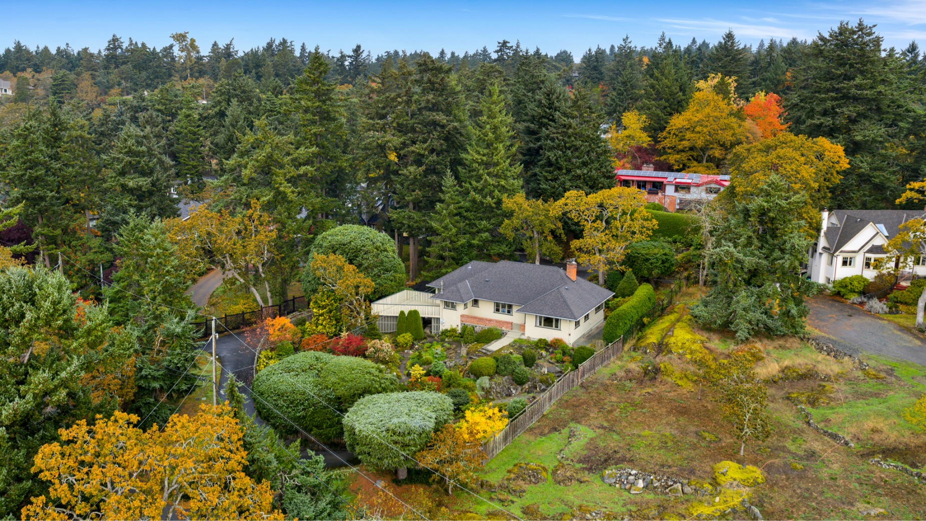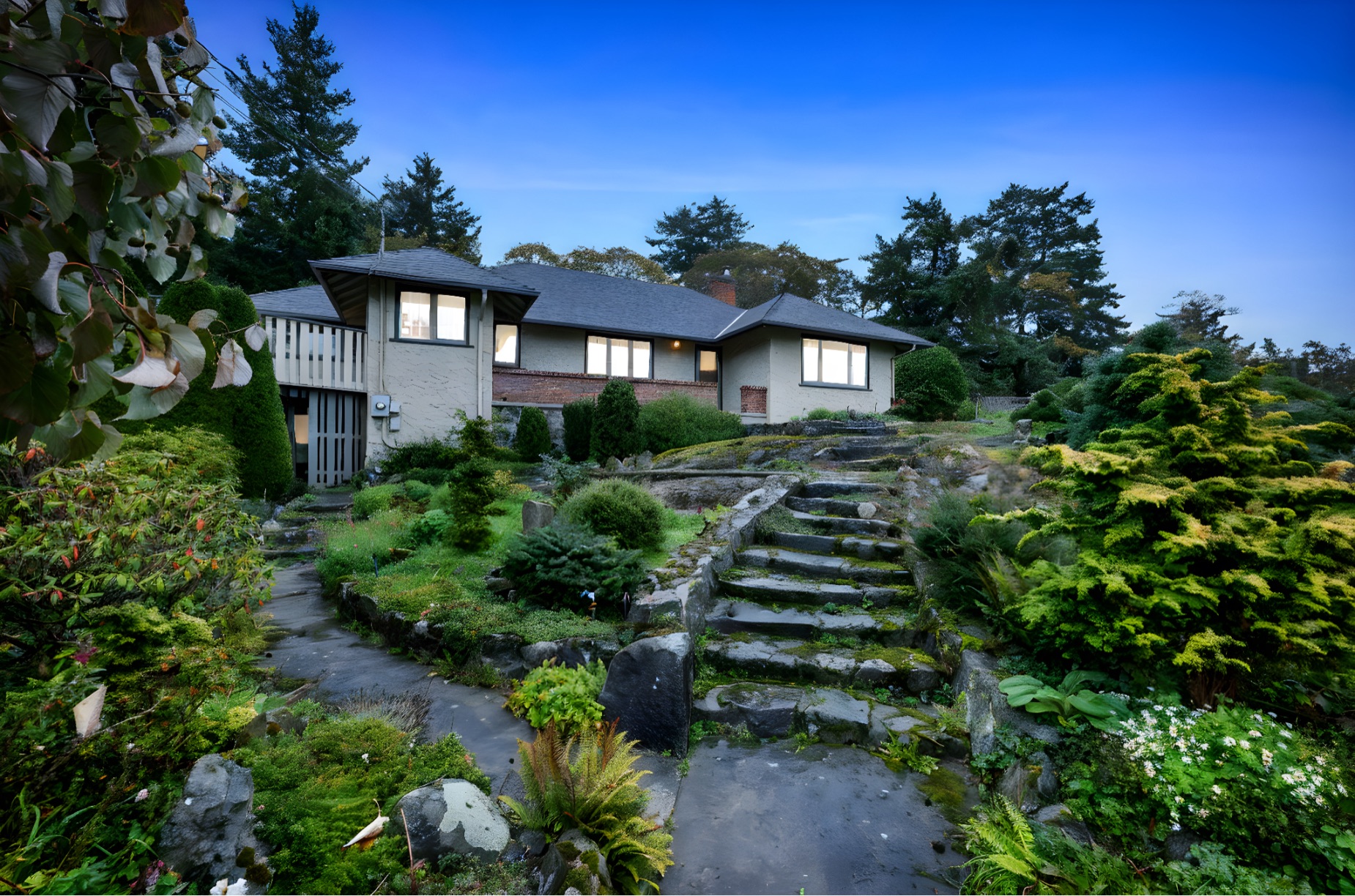 Welcome to your private sanctuary in Ten Mile Point, one of Victoria's most lovable seaside neighbourhoods. Set on nearly three-quarters of an acre of beautifully landscaped and fully fenced gardens, this meticulously cared-for home offers tranquility, spectacular views, and timeless charm. Inside, over 1,500 sq ft of thoughtfully designed living space features two bedrooms and two bathrooms, all on one level. The updated kitchen leads to a fantastic office space, and a large deck overlooking the gardens and water. The dining and living areas offer light and character, while being surrounded in nature. Every detail reflects pride of ownership and careful maintenance throughout. The unfinished basement offers ample storage and a versatile workshop space. Enjoy the best of both worlds - the privacy and natural beauty of Ten Mile Point, with convenient access to Cadboro Bay Village, walking trails, and the ocean just steps from your door. A truly special home in an exceptional setting.