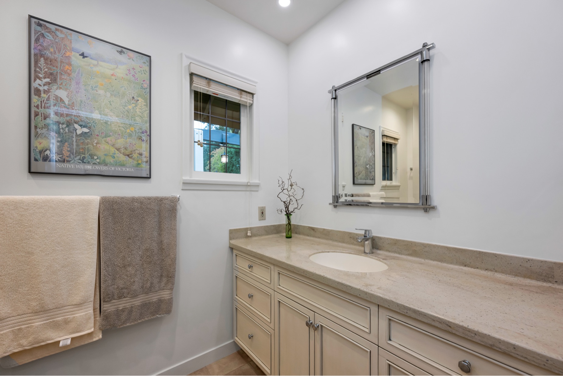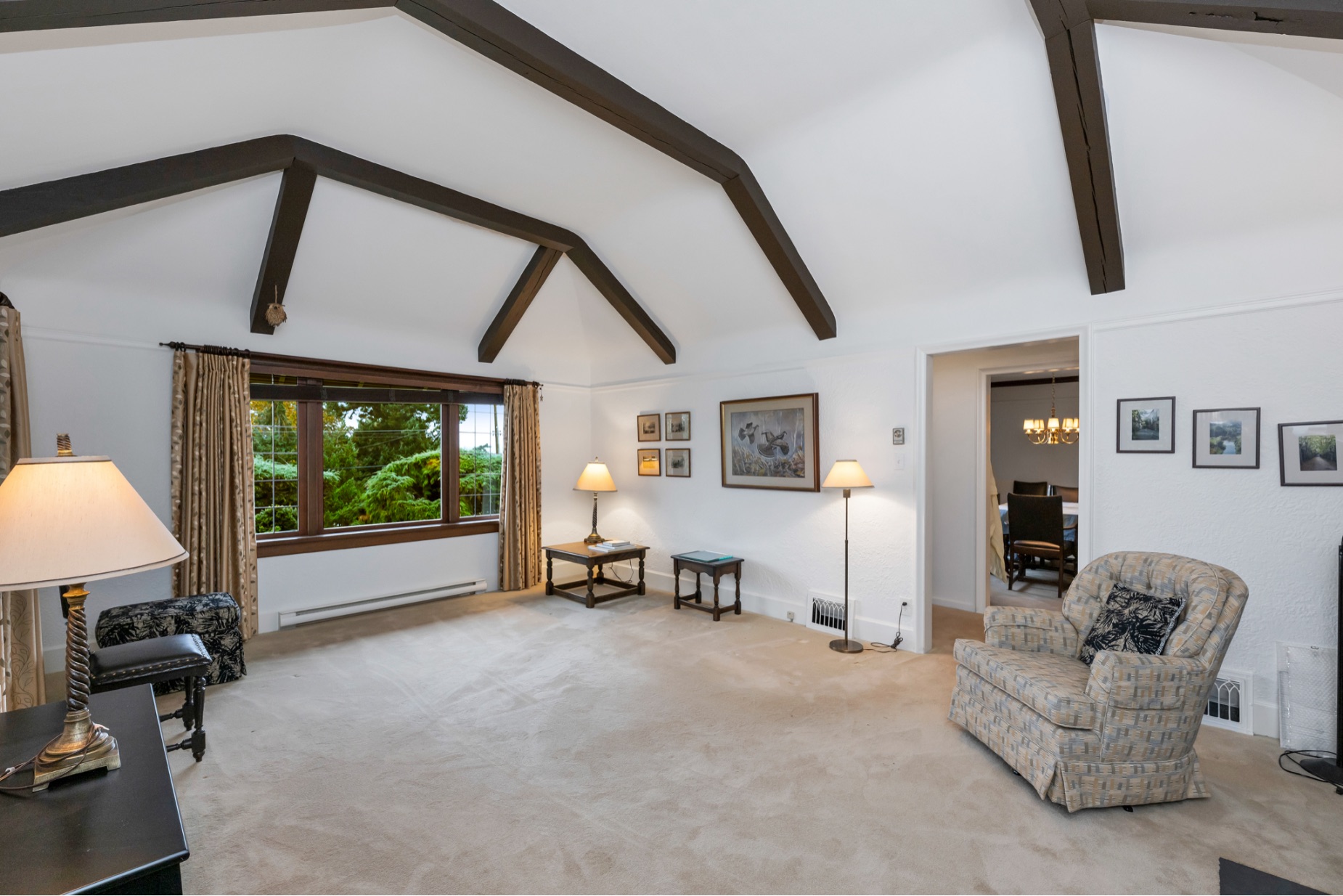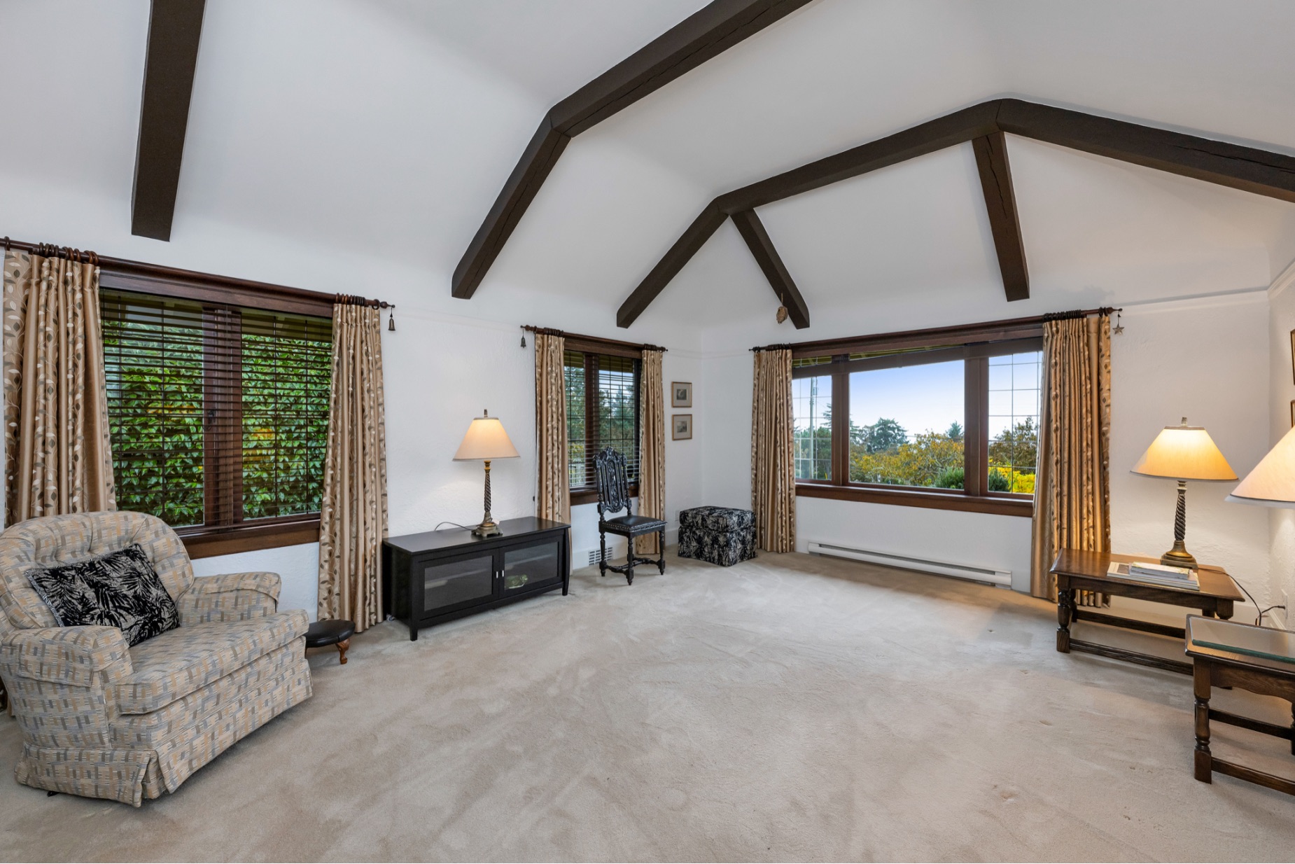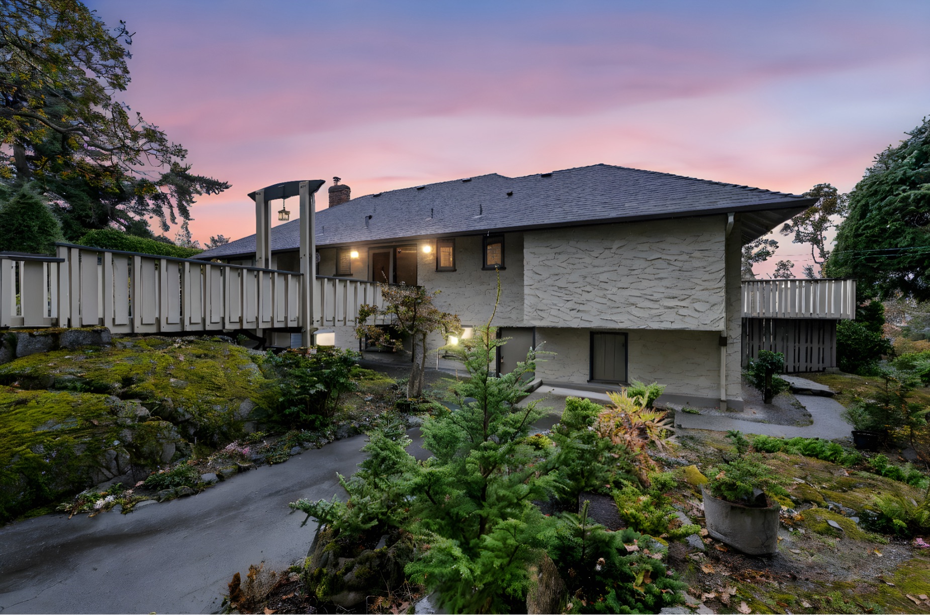 Welcome to your private sanctuary in Ten Mile Point, one of Victoria's most lovable seaside neighbourhoods. Set on nearly three-quarters of an acre of beautifully landscaped and fully fenced gardens, this meticulously cared-for home offers tranquility, spectacular views, and timeless charm. Inside, over 1,500 sq ft of thoughtfully designed living space features two bedrooms and two bathrooms, all on one level. The updated kitchen leads to a fantastic office space, and a large deck overlooking the gardens and water. The dining and living areas offer light and character, while being surrounded in nature. Every detail reflects pride of ownership and careful maintenance throughout. The unfinished basement offers ample storage and a versatile workshop space. Enjoy the best of both worlds - the privacy and natural beauty of Ten Mile Point, with convenient access to Cadboro Bay Village, walking trails, and the ocean just steps from your door. A truly special home in an exceptional setting.