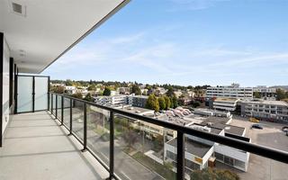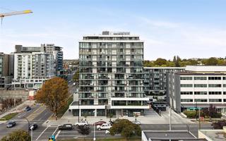 Welcome to Unit 809 at The Nest - a stunning, nearly new 2 bedroom, 2 bathroom condo that combines modern design with everyday comfort. This bright, south-facing unit captures natural light throughout the day and features an open, thoughtfully designed floor plan with sleek quartz countertops, premium Fisher & Paykel appliances, and timeless contemporary finishes. The primary suite is a serene retreat, complete with a walk-in closet and a luxurious ensuite with radiant floor heating. The second bedroom offers excellent flexibility - ideal for guests, your little one, or a dedicated home office. Step outside to your expansive balcony and take in sweeping city, ocean, and mountain views - the perfect backdrop for morning coffee or evening relaxation taking in beautiful sunsets. Built with solid concrete construction and equipped with in-unit air conditioning, The Nest provides exceptional quality and comfort. Residents also enjoy convenient amenities including a fully equipped fitness studio, dog wash station and running area, along with a children’s playground. Located steps from shopping, dining, parks, and downtown Victoria, this immaculate home is vacant and move-in ready. Enjoy the rare opportunity to own a nearly new condo with no GST - skip the wait and start living at The Nest.