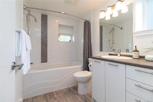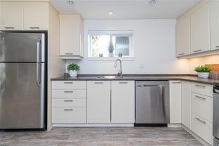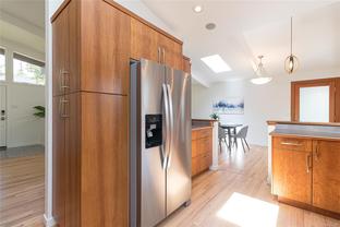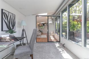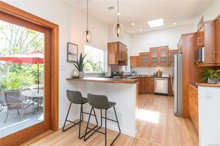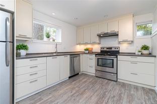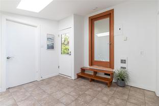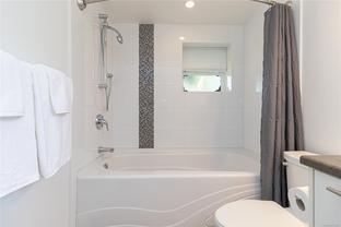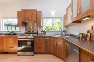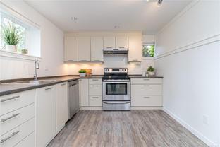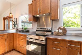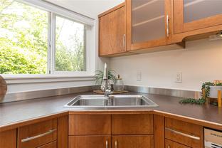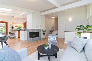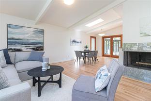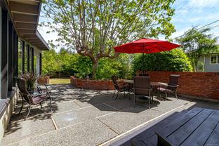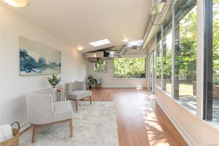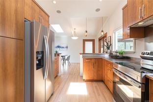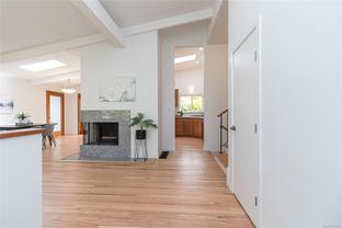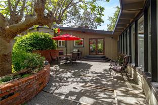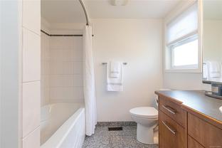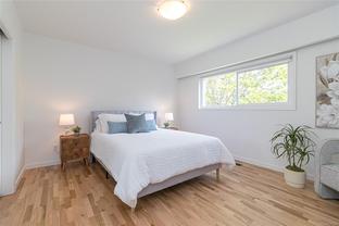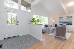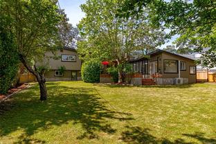 This beautifully updated mid-century modern home blends style and function with its crisp architectural lines, vaulted ceilings, and thoughtfully laid-out floor plan. The main living area features newly refinished oak hardwood floors, creating a warm and inviting atmosphere. The generous kitchen, equipped with stainless steel appliances, is perfect for both casual meals and entertaining guests. A spacious mudroom and a flexible area on the main floor provide options for a family room, home office, or studio, adding versatility to the home. Upstairs, you'll find a large primary bedroom with an updated ensuite, along with a four-piece main bathroom and convenient laundry facilities. The lower level offers excellent separation, with an additional bedroom, bathroom and living area, making it ideal for teenagers or in-laws seeking their own space. Step outside to enjoy barbecues on the sunny patio or relax by the cozy wood-burning fireplace indoors. The fully fenced yard is perfect for children and pets to play safely. Year-round comfort is ensured by two heat pumps, and there’s a single carport plus plenty of storage. This move-in-ready home is in great condition. In a prime location, it's just steps from UVic, Mt. Tolmie, and Henderson Rec Centre, with Cadboro Bay Village and Gyro Beach only minutes away. Truly a fantastic home in an excellent neighbourhood.