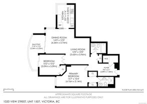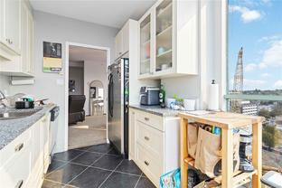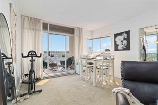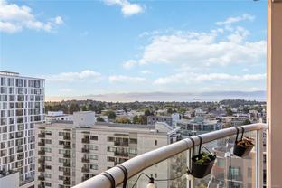 Spectacular Views! Perched on the 13th floor of Regents Park, this south-facing 2-bedroom, 2-bath condo showcases panoramic views of the ocean, Olympic Mountains, and Victoria skyline. Over 1,100 sq ft of living space includes a split-bedroom layout, spacious primary suite with walk-through closet and ensuite, in-suite laundry, and a large balcony to enjoy the scenery. The steel and concrete building is pet-friendly and offers secure underground parking, storage, fitness centre, hot tub, and on-site caretaker. Steps to groceries, shops, dining, and the waterfront in vibrant Harris Green.