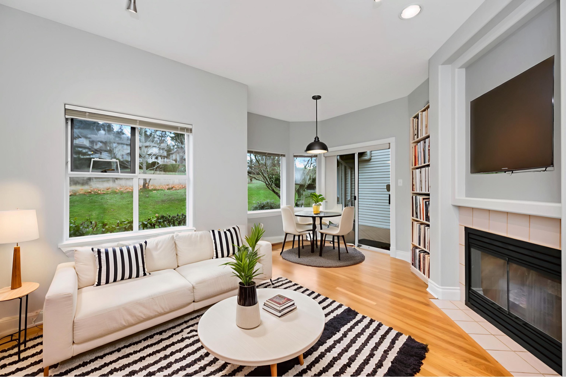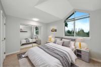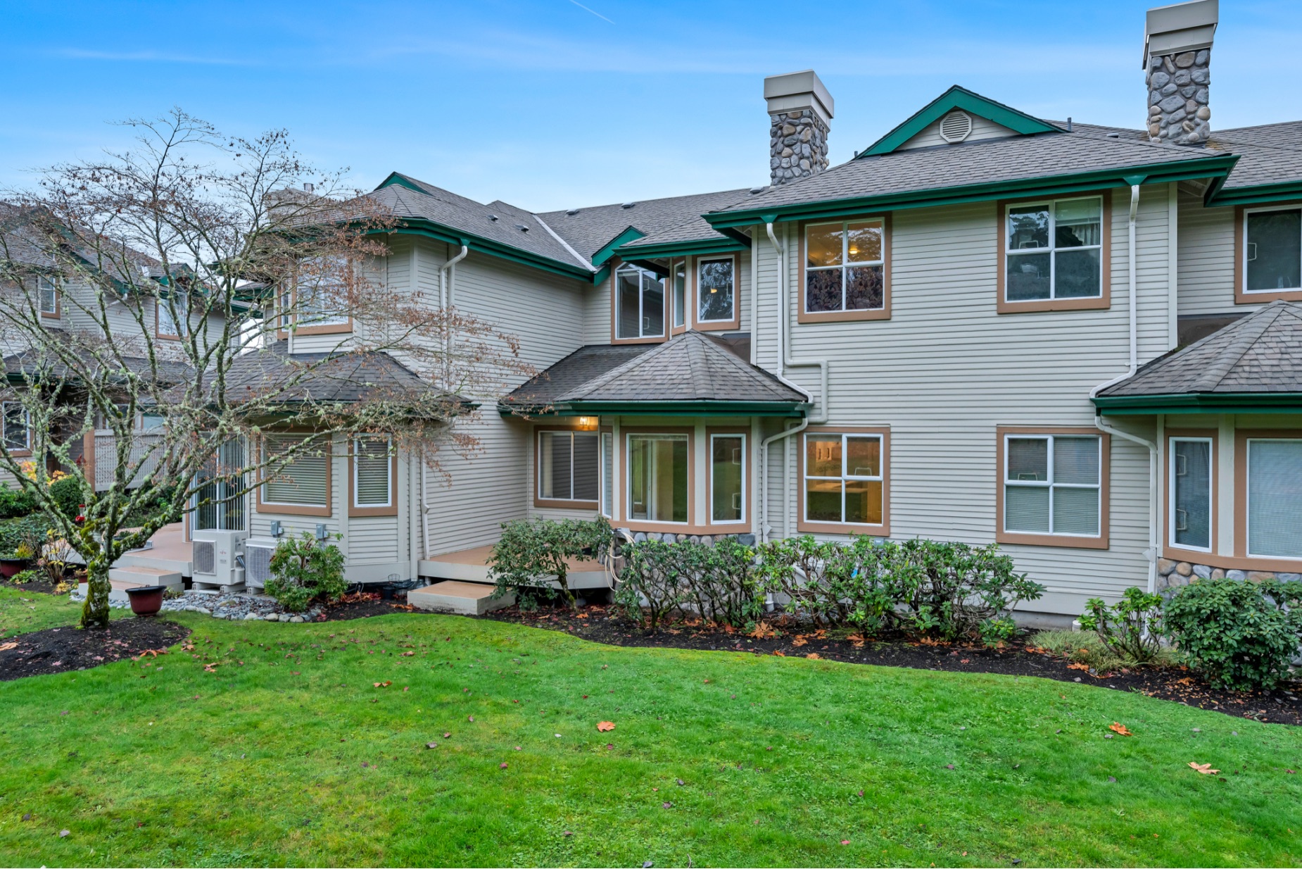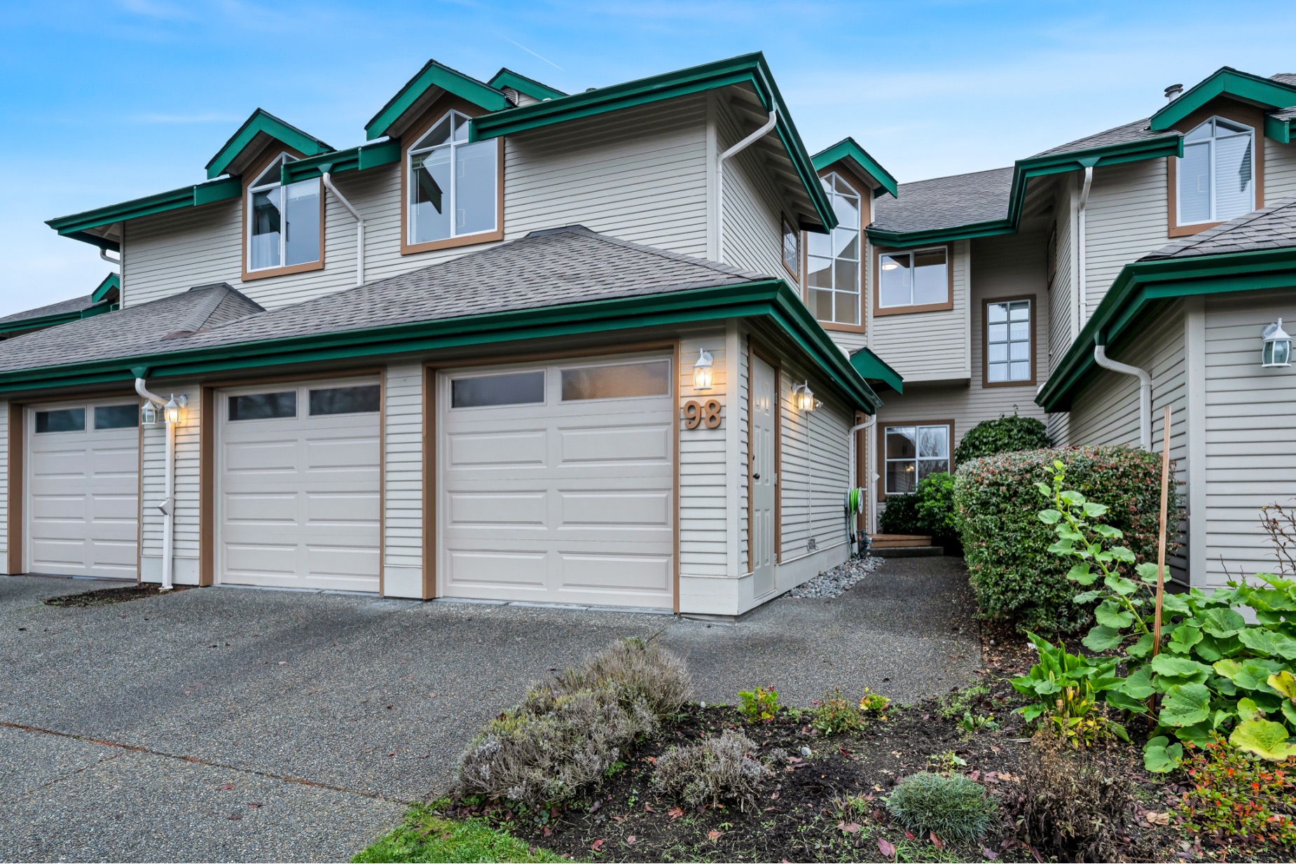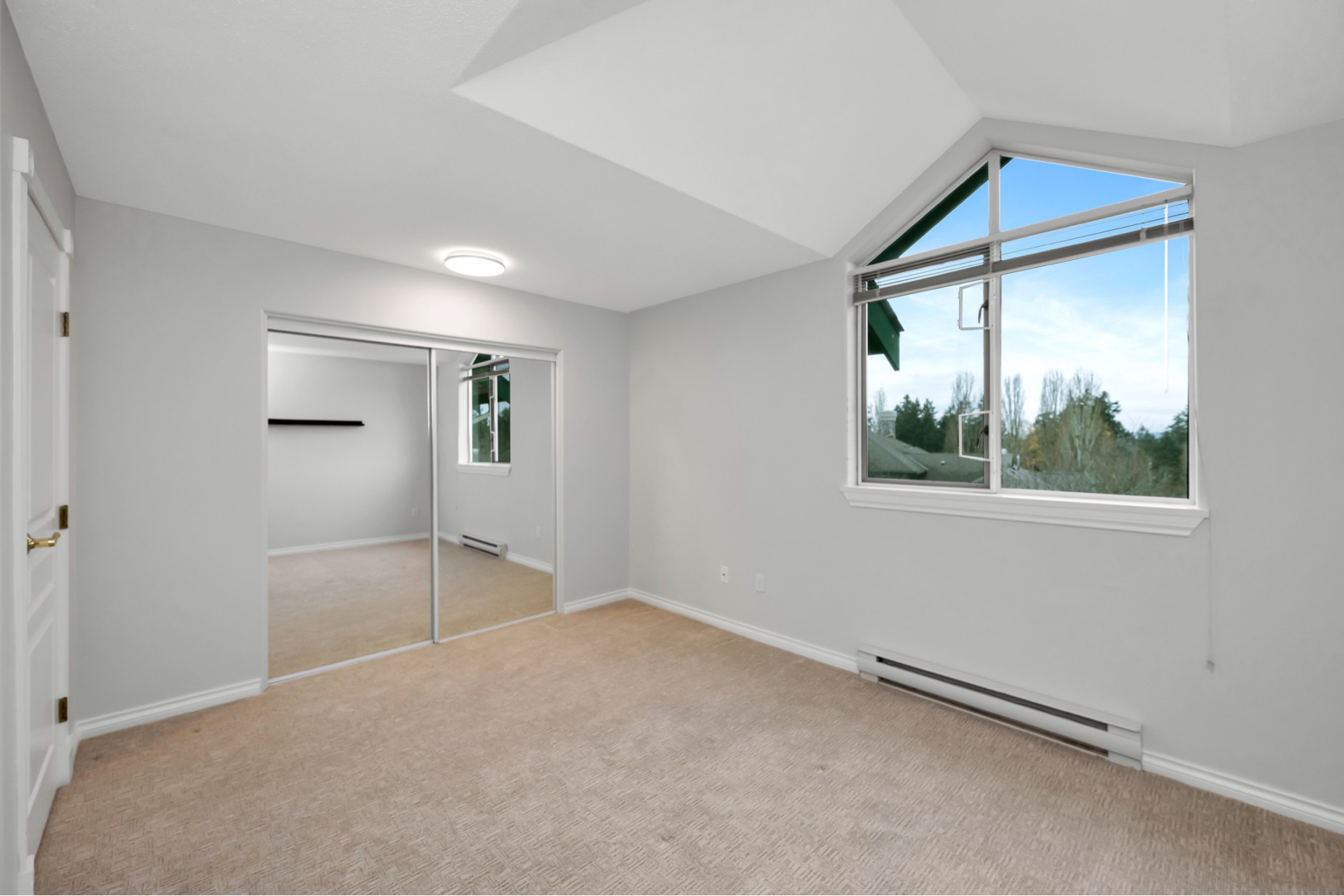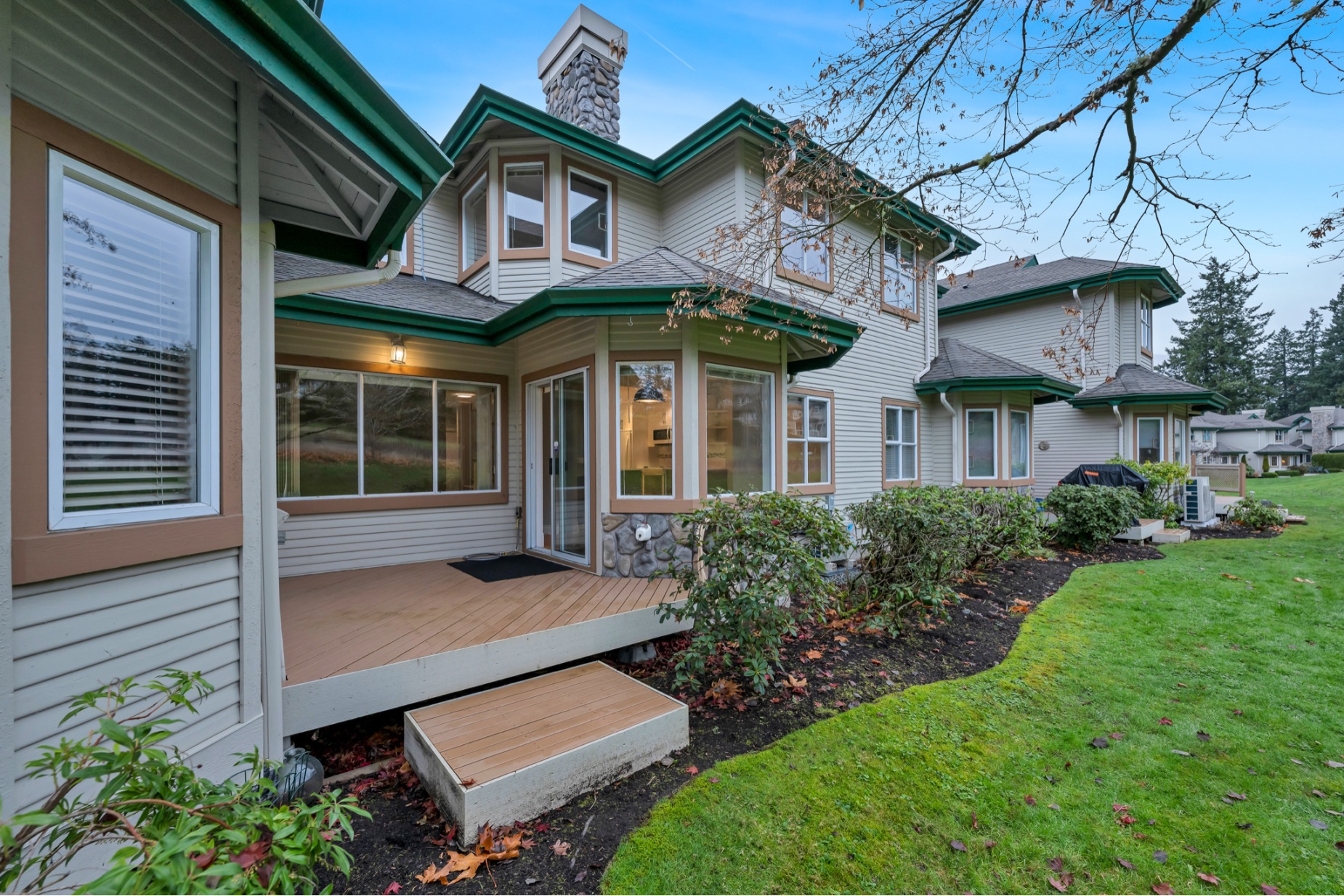 Open House November 26th from 1:00pm - 2:30pm. This spacious and immaculate 3 bedroom, 3 bathroom townhouse in desirable Royal Oak offers comfort, style, and a low-maintenance lifestyle. Tucked away in a peaceful green setting, the main level welcomes you with soaring 18' ceilings, an open dining area that connects to the kitchen & living room, a private office space, and a 4-pc bathroom. The updated kitchen features a bright breakfast nook leading to the deck, and opens seamlessly into the living room, where a double-sided fireplace adds warmth and charm. Upstairs, the primary bedroom serves as a private retreat, featuring a walk-in-closet, a flexible space for a reading station, and a 5-pc ensuite with a freestanding soaking tub and separate shower. Two additional bedrooms, a laundry room, and an additional 4-pc bathroom provide plenty of space for family or guests. Other highlights include a large 2-car garage, and a beautiful quiet setting near Elk/Beaver Lake Regional Park, Commonwealth Pool, hiking trails, and variety of shopping and dining options.
