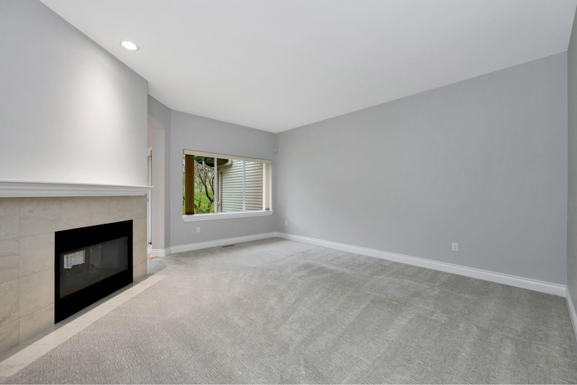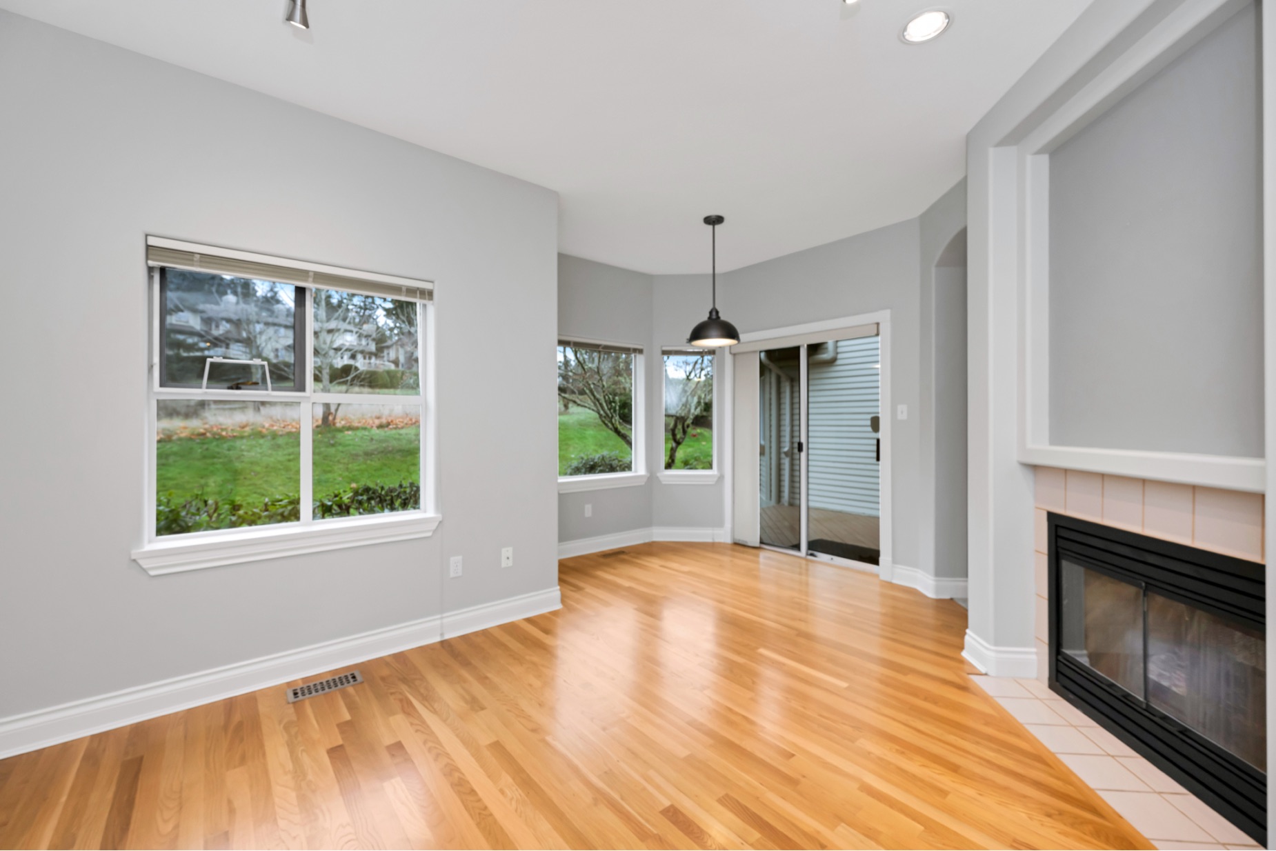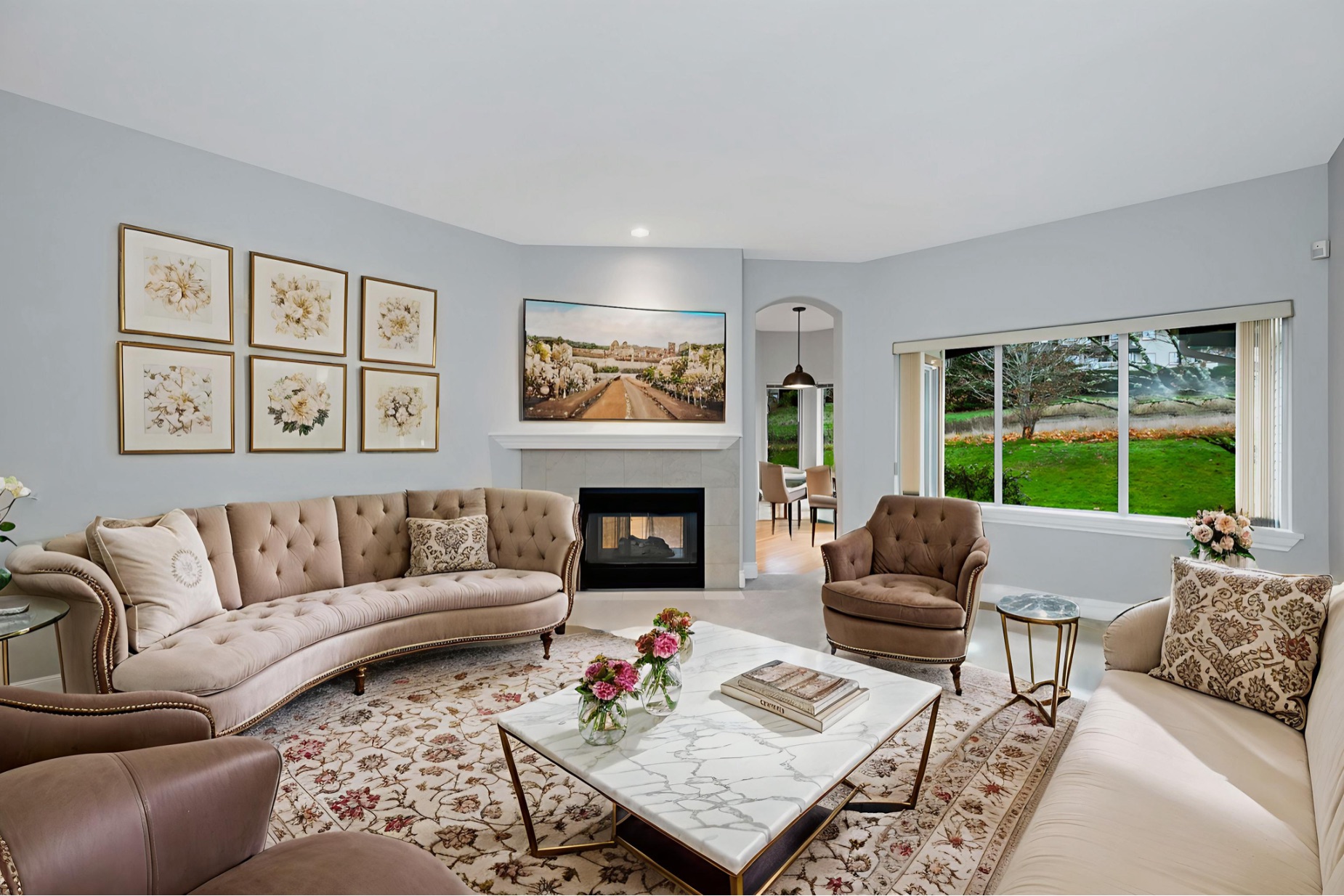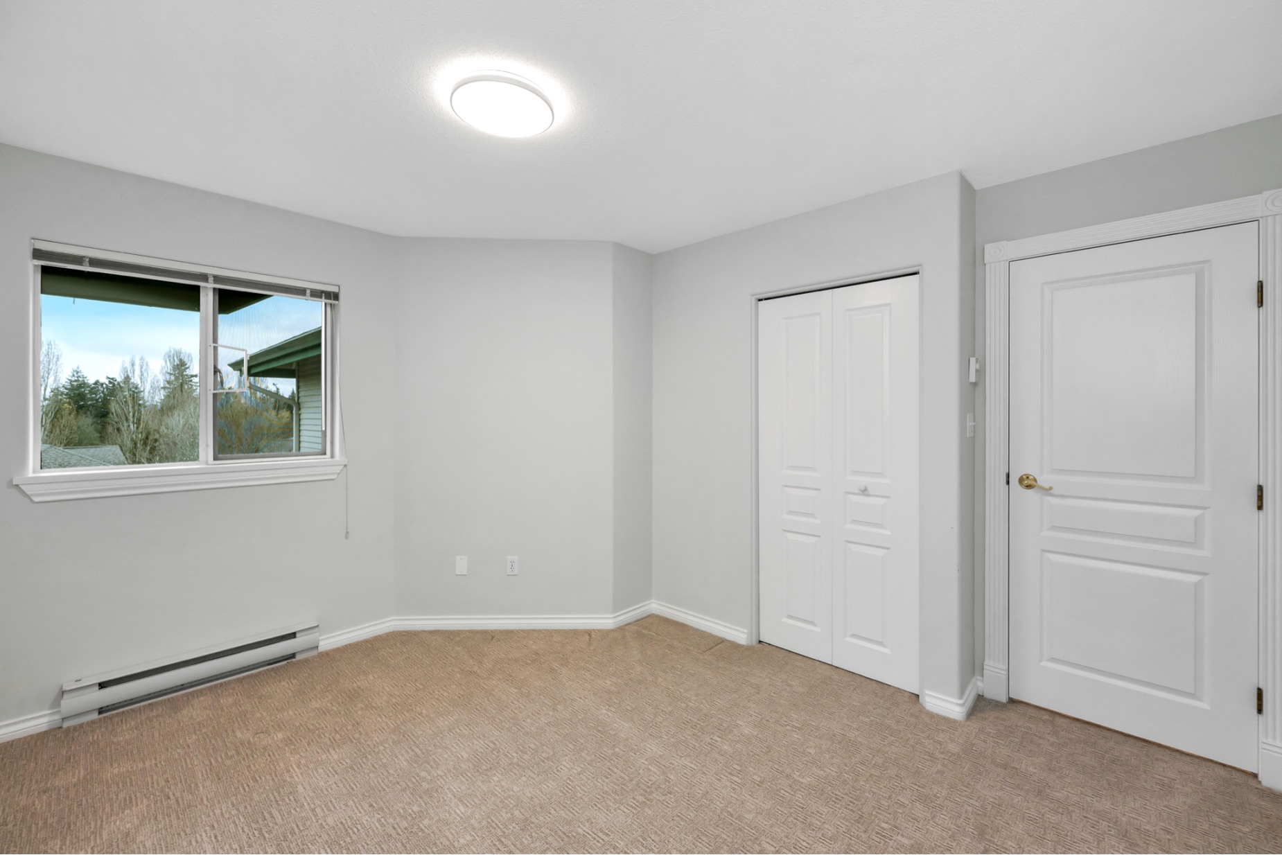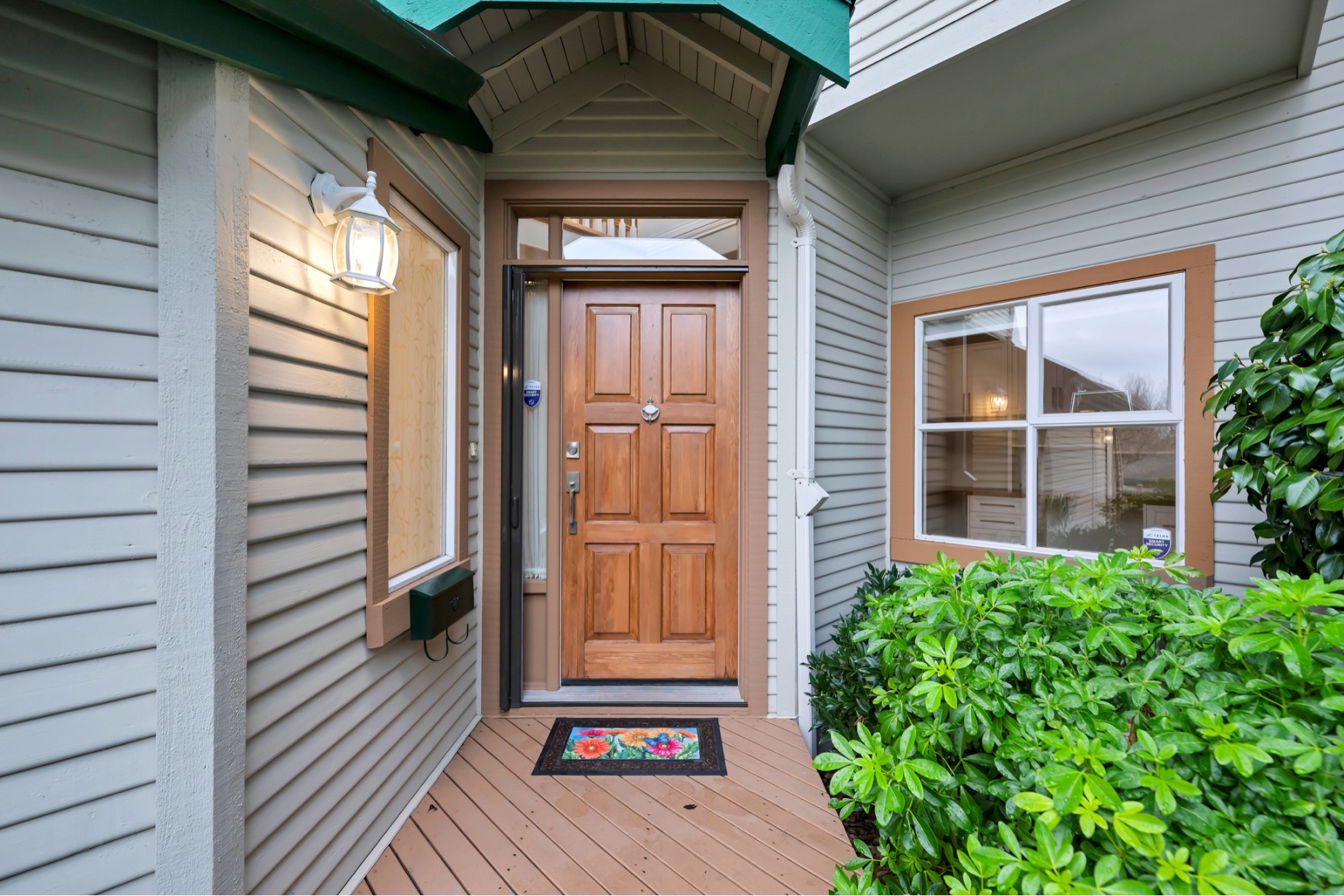 Open House November 26th from 1:00pm - 2:30pm. This spacious and immaculate 3 bedroom, 3 bathroom townhouse in desirable Royal Oak offers comfort, style, and a low-maintenance lifestyle. Tucked away in a peaceful green setting, the main level welcomes you with soaring 18' ceilings, an open dining area that connects to the kitchen & living room, a private office space, and a 4-pc bathroom. The updated kitchen features a bright breakfast nook leading to the deck, and opens seamlessly into the living room, where a double-sided fireplace adds warmth and charm. Upstairs, the primary bedroom serves as a private retreat, featuring a walk-in-closet, a flexible space for a reading station, and a 5-pc ensuite with a freestanding soaking tub and separate shower. Two additional bedrooms, a laundry room, and an additional 4-pc bathroom provide plenty of space for family or guests. Other highlights include a large 2-car garage, and a beautiful quiet setting near Elk/Beaver Lake Regional Park, Commonwealth Pool, hiking trails, and variety of shopping and dining options.