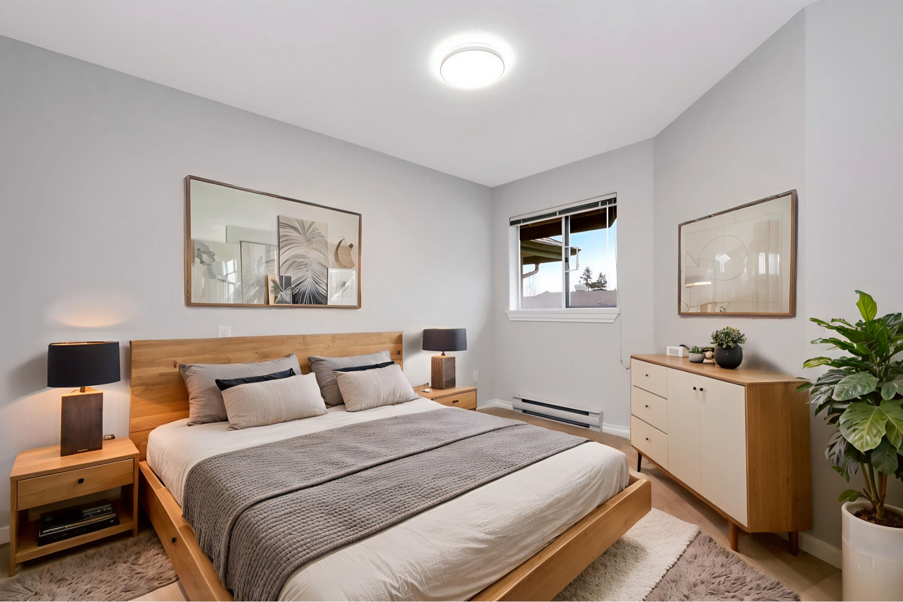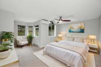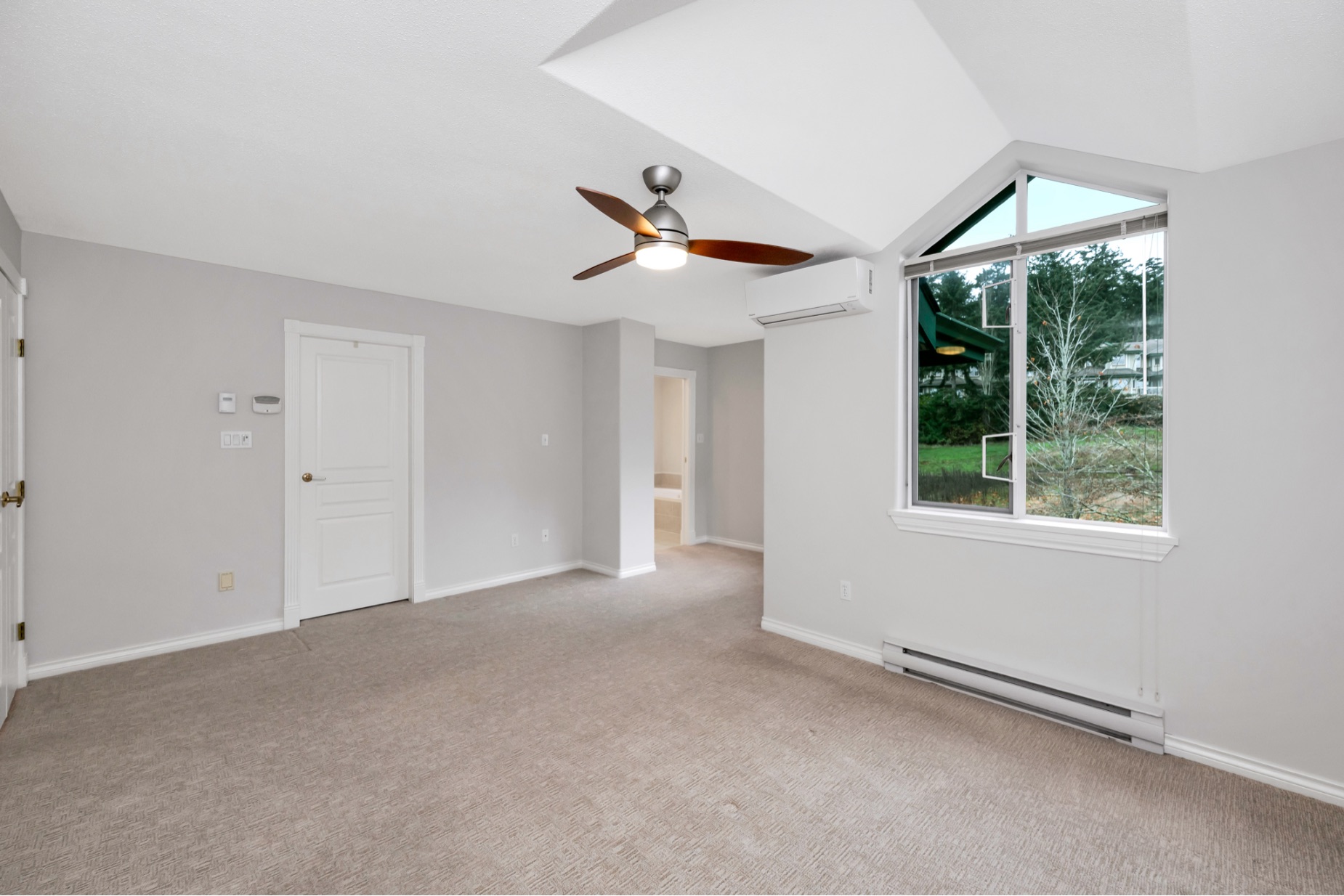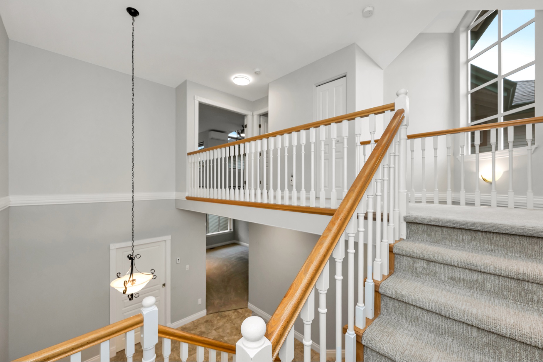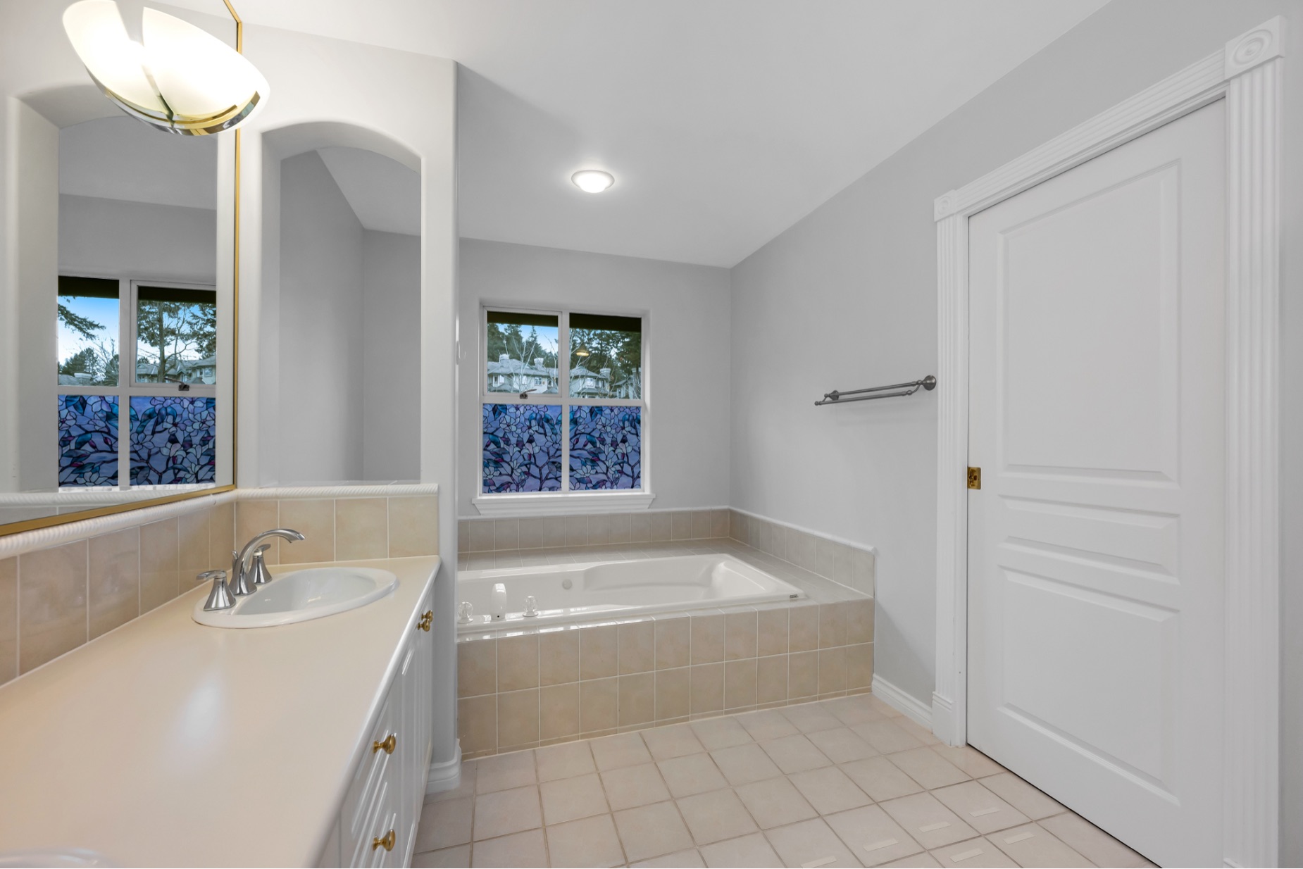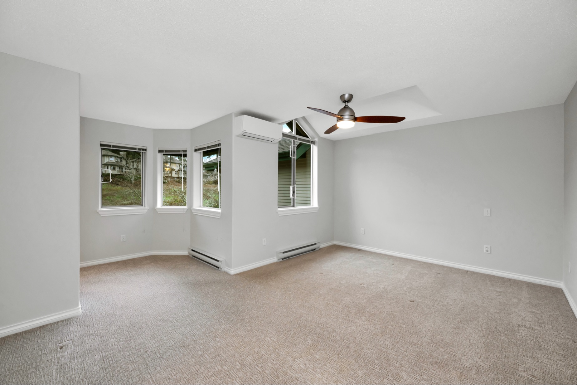 Open House November 26th from 1:00pm - 2:30pm. This spacious and immaculate 3 bedroom, 3 bathroom townhouse in desirable Royal Oak offers comfort, style, and a low-maintenance lifestyle. Tucked away in a peaceful green setting, the main level welcomes you with soaring 18' ceilings, an open dining area that connects to the kitchen & living room, a private office space, and a 4-pc bathroom. The updated kitchen features a bright breakfast nook leading to the deck, and opens seamlessly into the living room, where a double-sided fireplace adds warmth and charm. Upstairs, the primary bedroom serves as a private retreat, featuring a walk-in-closet, a flexible space for a reading station, and a 5-pc ensuite with a freestanding soaking tub and separate shower. Two additional bedrooms, a laundry room, and an additional 4-pc bathroom provide plenty of space for family or guests. Other highlights include a large 2-car garage, and a beautiful quiet setting near Elk/Beaver Lake Regional Park, Commonwealth Pool, hiking trails, and variety of shopping and dining options.