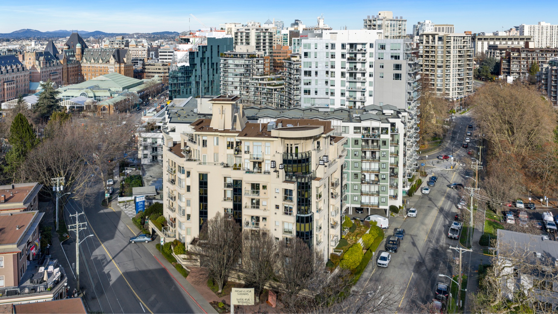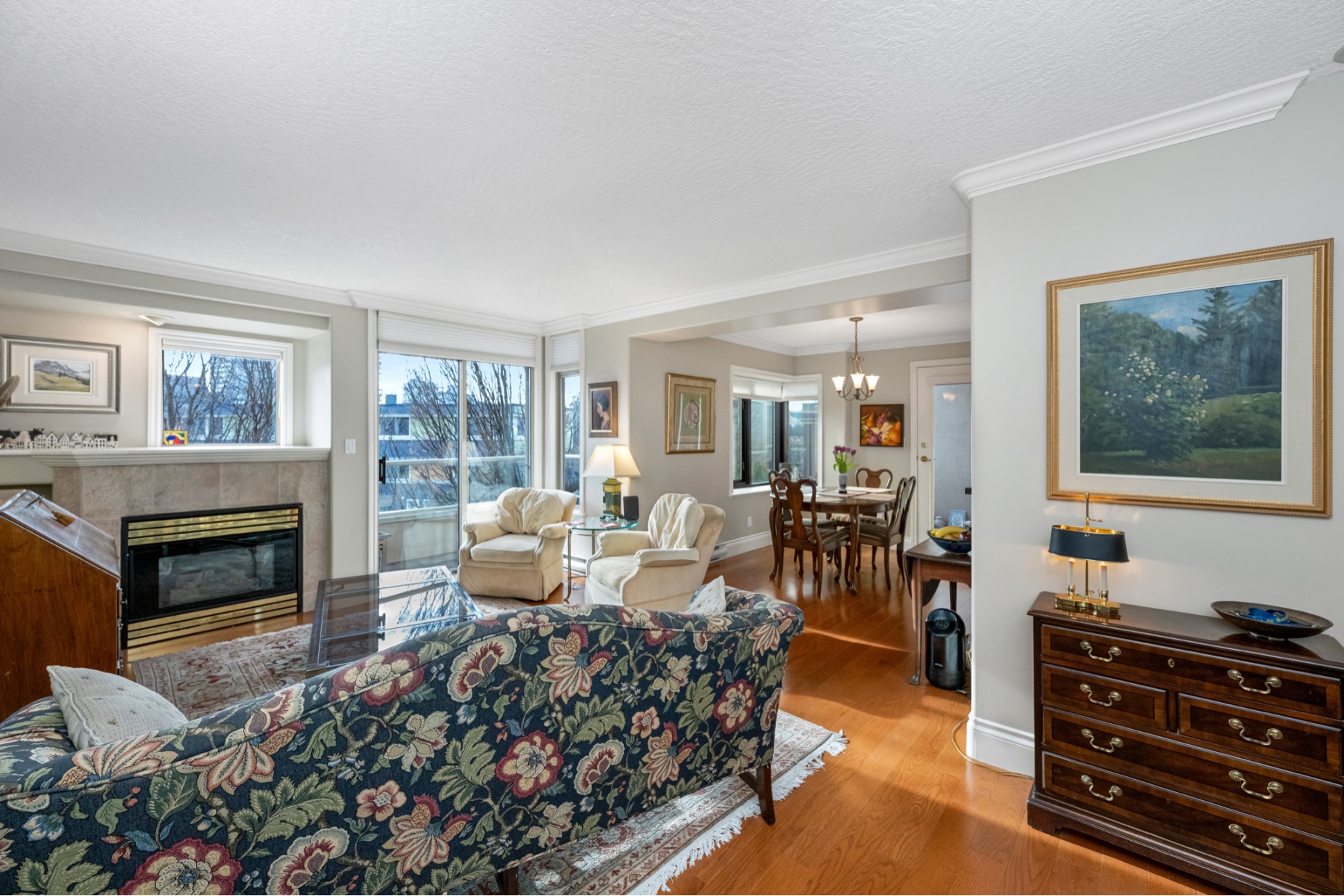 Charming 2 bedroom/2 bathroom condo in James Bay, ideally located close to Beacon Hill Park and all that downtown has to offer. This home checks all the boxes with over 1,300+ square feet of living space, in-suite laundry and underground parking, as well as two sunny balconies looking over the greenery and city. There is plenty of room for a place to call home in this pet friendly and well maintained building. There is access to the two balconies through the living room, dining room, and guest bedroom, giving the home an airy and bright atmosphere. The kitchen provides great counter space and cabinets while allowing easy conversation, and the living room features a cozy gas fireplace as well as additional space for an eating nook, office, or piano. The primary bedroom is generously sized with a walk-in closet, 4-pc ensuite, and bookshelf, while the second bedroom offers a flexible space with a Murphy bed and 4-pc bathroom across the hall. There is fantastic storage throughout, including a large pantry space in the laundry room, and a separate storage locker. Thoughtfully laid out and filled with natural light, this special home offers a rare combination of space, comfort, and location - while being situated in one of Victoria’s most beloved neighbourhoods.