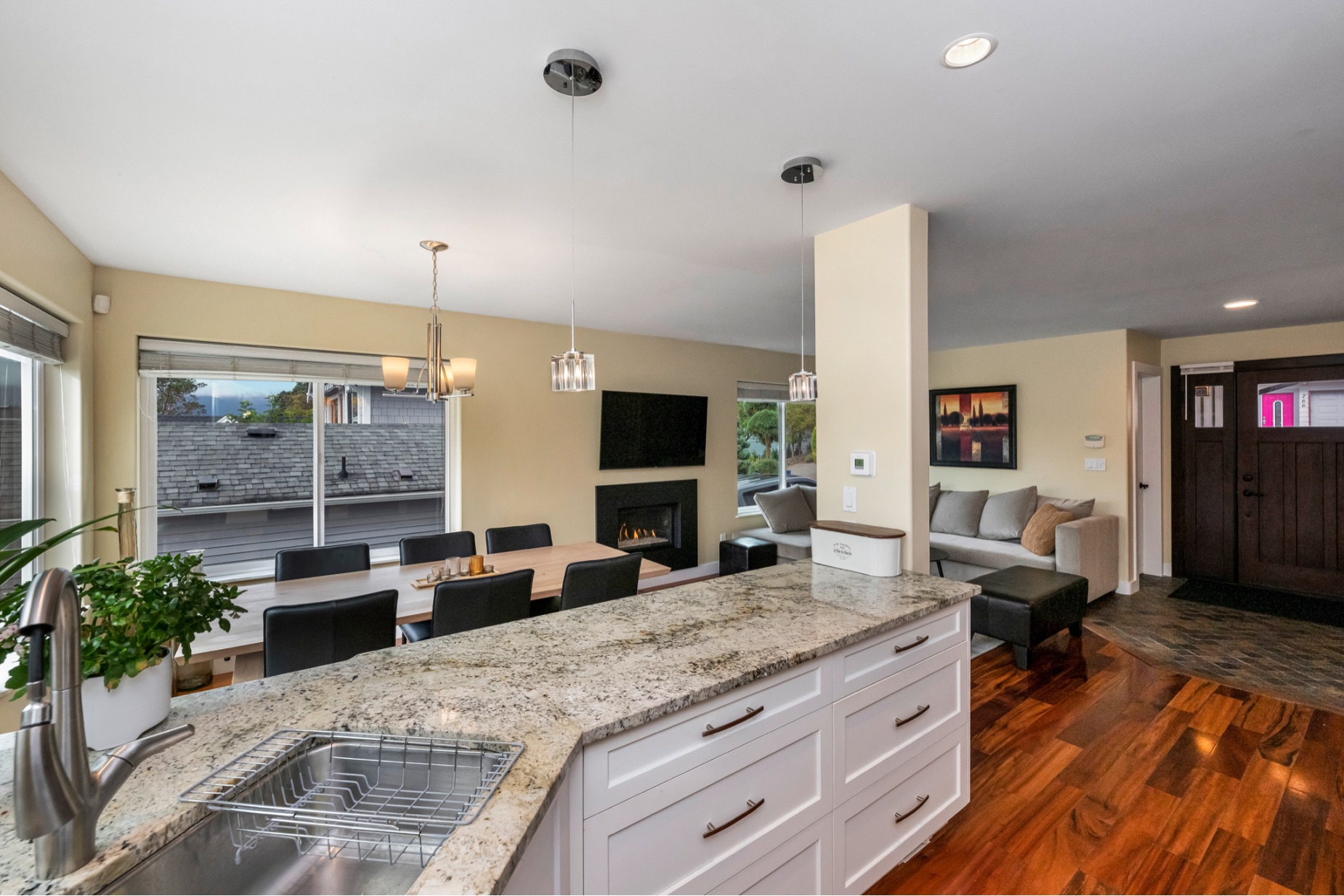 Tucked away in the peaceful charm of Brentwood Bay, this 1675 sq ft home offers tranquility, flexibility, and stunning western views of the bay and its seaside activity. With 4 bedrooms or 3 plus a den, it’s ideal for families or remote professionals. Travelers will appreciate the easy-care lock-up design, spacious garage, and abundant parking both front and back. The main floor features two bedrooms, an open-concept living room with cozy gas fireplace, dining area, kitchen, and a large laundry room. A 900 sq ft crawl space with 4-foot clearance adds accessible storage. Upstairs, the primary suite is a true sanctuary—complete with a spa-like bathroom, generous walk-in closet, and direct access to a large south-facing deck with panoramic views. A second upstairs bedroom also enjoys breathtaking vistas, along with a guest bathroom. Whether you're seeking quiet comfort or a launchpad for adventure, this home delivers both in one of the region’s most idyllic settings.