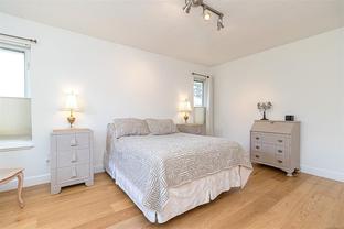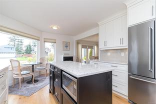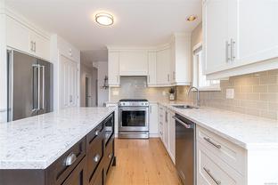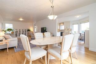 Sidney seaside living at its finest—welcome to your dream home by the Salish Sea! Just steps from the ocean and Lochside Waterfront Park, this beautifully renovated home offers panoramic views across the water to James Island and Sidney Island. Nearly every room captures the stunning scenery. Updates include a custom kitchen with solid wood cabinetry, quartz countertops, high-end appliances, and a large island. The open-concept living area features a gas fireplace and oceanview eating nook. Wide-plank oak floors and renovated baths complete the transformation, including an upstairs bath with Carrera marble walk-in shower. The main-level primary has a walk-in closet and 4-piece ensuite. Upstairs includes two more bedrooms, one a second primary with ensuite. Enjoy the oceanview terrace, a separate garage, and stroll downtown via the scenic “Heart Walk.” Dining, shopping, and transit to Victoria all nearby. You’ll be impressed!