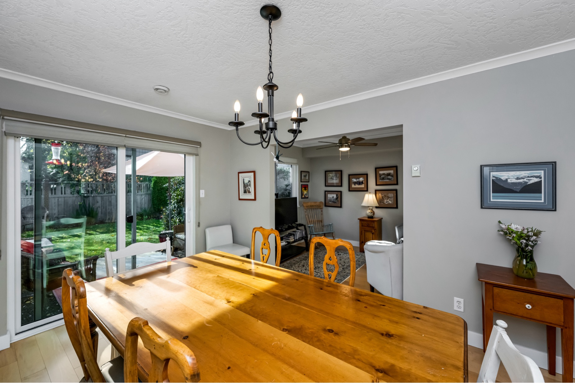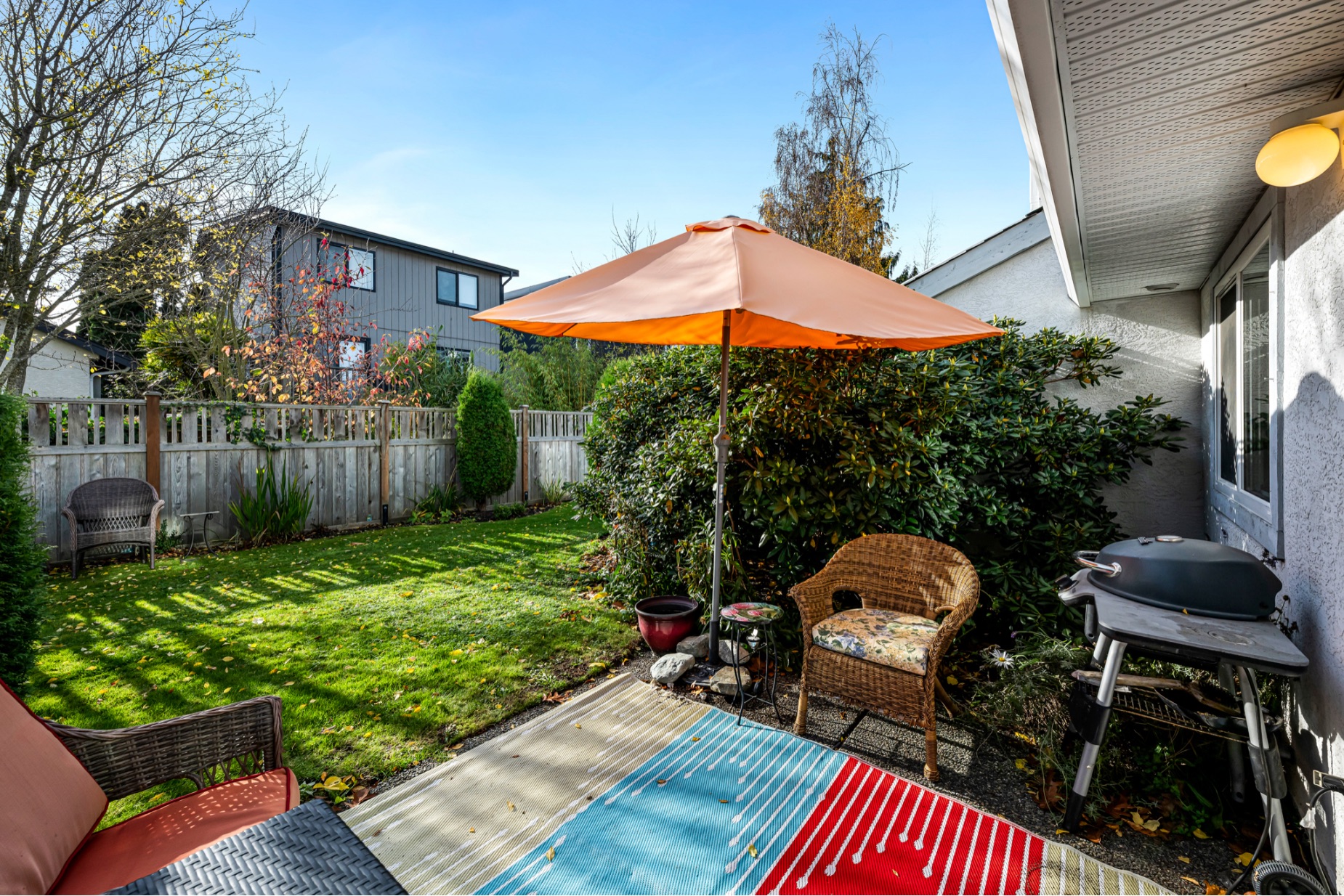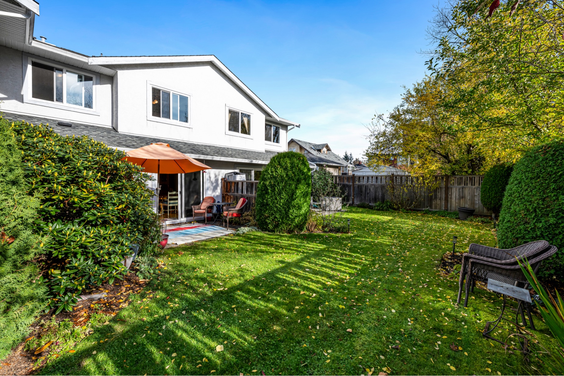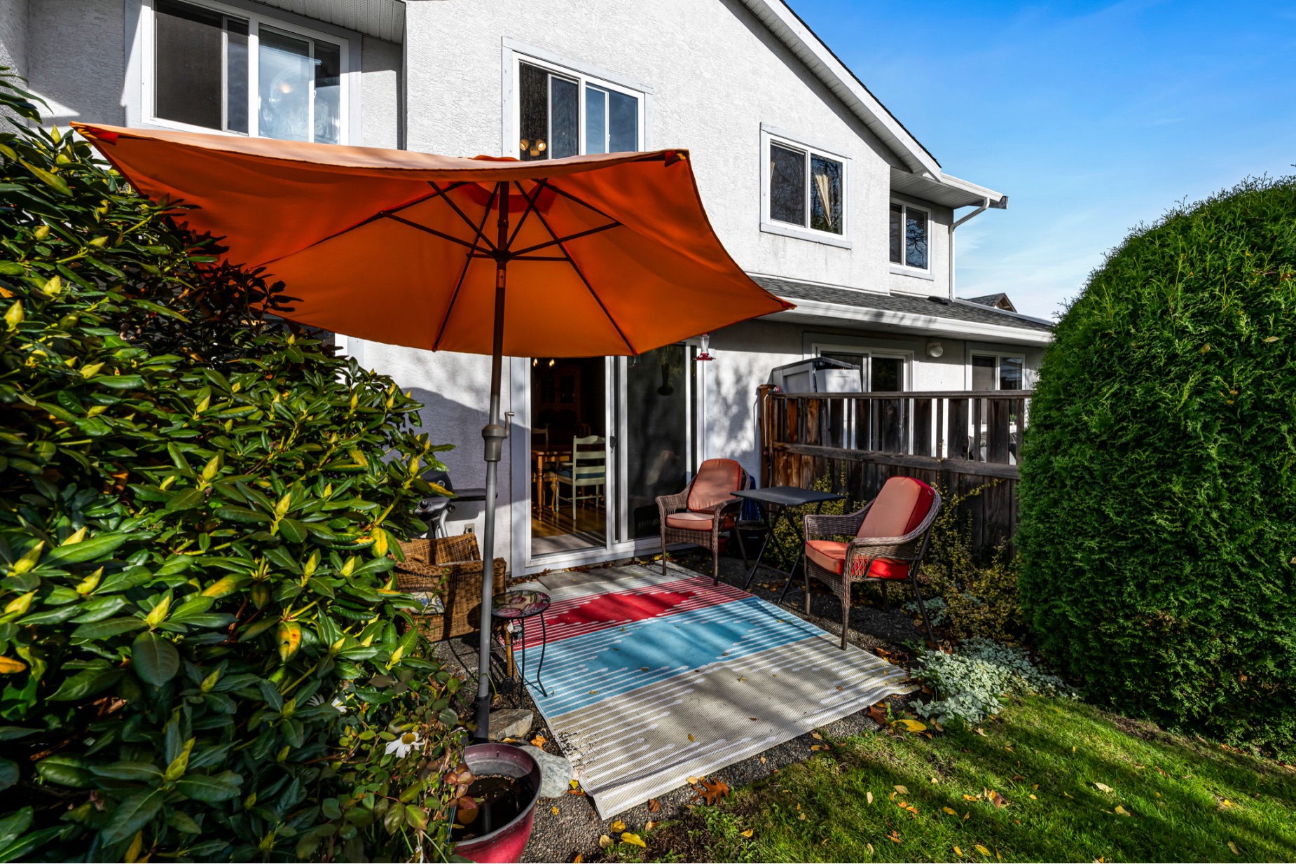 Fantastic 3 bedroom, 3 bathroom 1582 sq ft Townhome centrally located; close to Urban Grocer, Christies Pub and everyone's favourite, Goodside Pastries. Set back from the road this 2 level home is quiet and peaceful with a glorious south facing patio and garden. You enter into the cozy living room with new electric fireplace (gas available) and vaulted ceiling. Beyond the living room is the open kitchen, family room and dining room with patio doors to the back patio. Also on the main floor you will find the large laundry room/mudroom just off the garage & 2 piece bathroom. Upstairs are three bedrooms (primary with WI closet and ensuite (heated floors)) and a guest bathroom. The current owners have tastefully renovated their home over the years - new maple hardwood, new carpeting and paint throughout; new cupboards, quartz counters, backsplash and stainless appliances in the kitchen; bathrooms with porcelain tile. Homes in this 6 unit strata don't come available very often so make haste