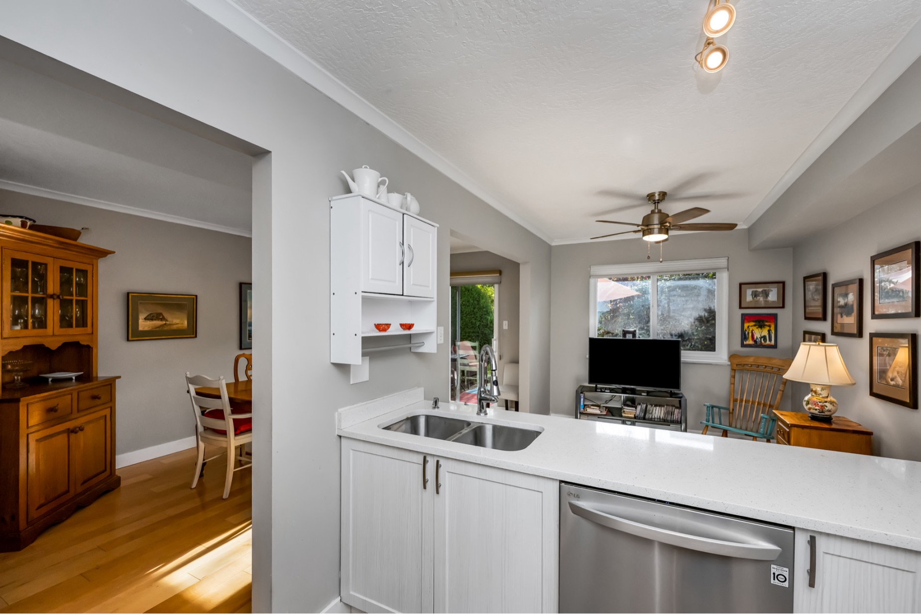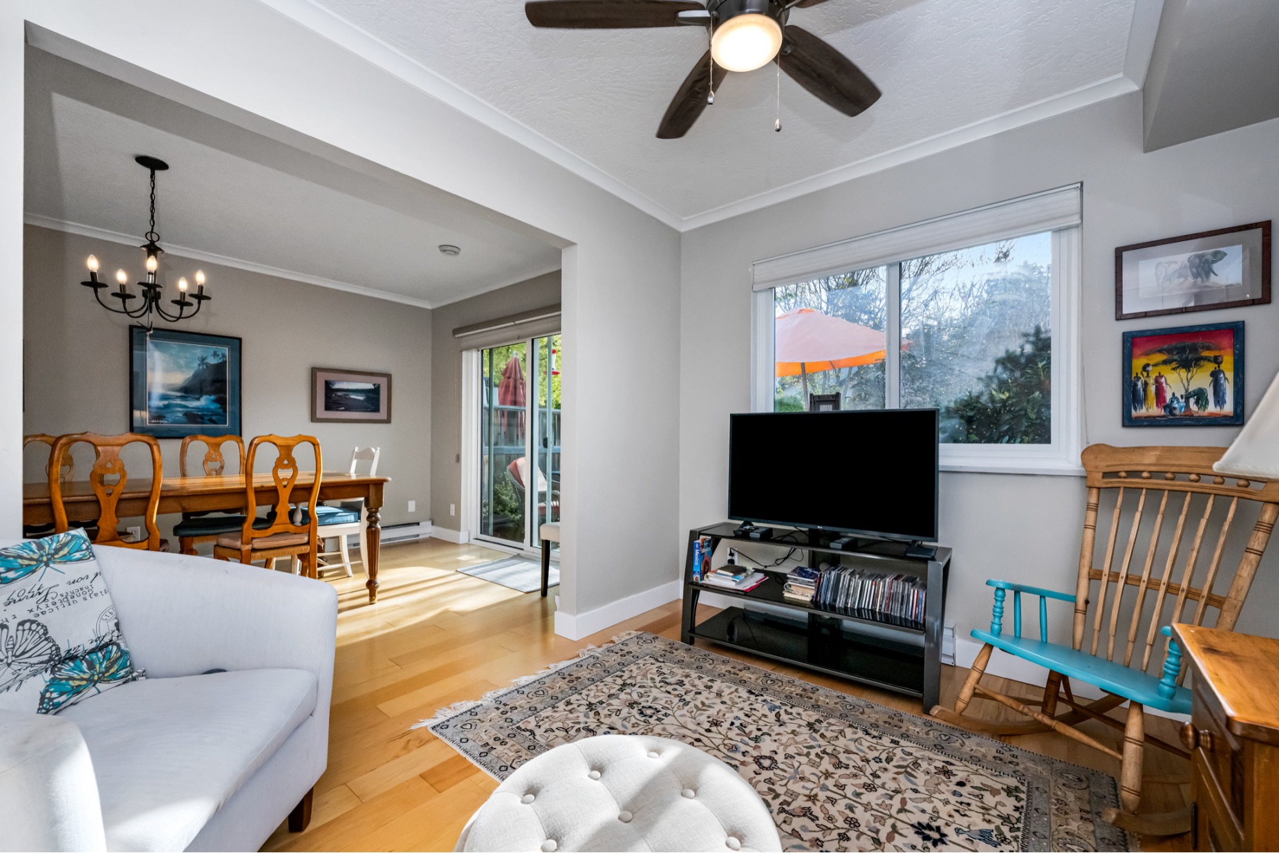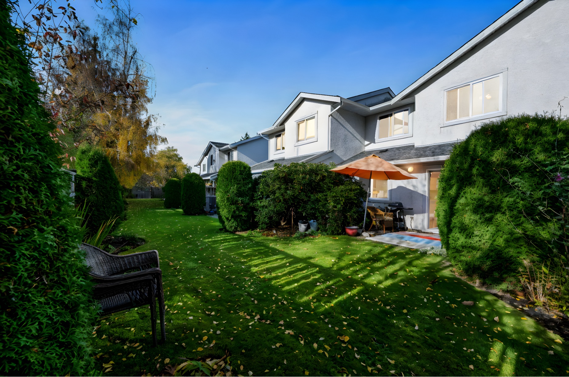 Fantastic 3 bedroom, 3 bathroom 1582 sq ft Townhome centrally located; close to Urban Grocer, Christies Pub and everyone's favourite, Goodside Pastries. Set back from the road this 2 level home is quiet and peaceful with a glorious south facing patio and garden. You enter into the cozy living room with new electric fireplace (gas available) and vaulted ceiling. Beyond the living room is the open kitchen, family room and dining room with patio doors to the back patio. Also on the main floor you will find the large laundry room/mudroom just off the garage & 2 piece bathroom. Upstairs are three bedrooms (primary with WI closet and ensuite (heated floors)) and a guest bathroom. The current owners have tastefully renovated their home over the years - new maple hardwood, new carpeting and paint throughout; new cupboards, quartz counters, backsplash and stainless appliances in the kitchen; bathrooms with porcelain tile. Homes in this 6 unit strata don't come available very often so make haste