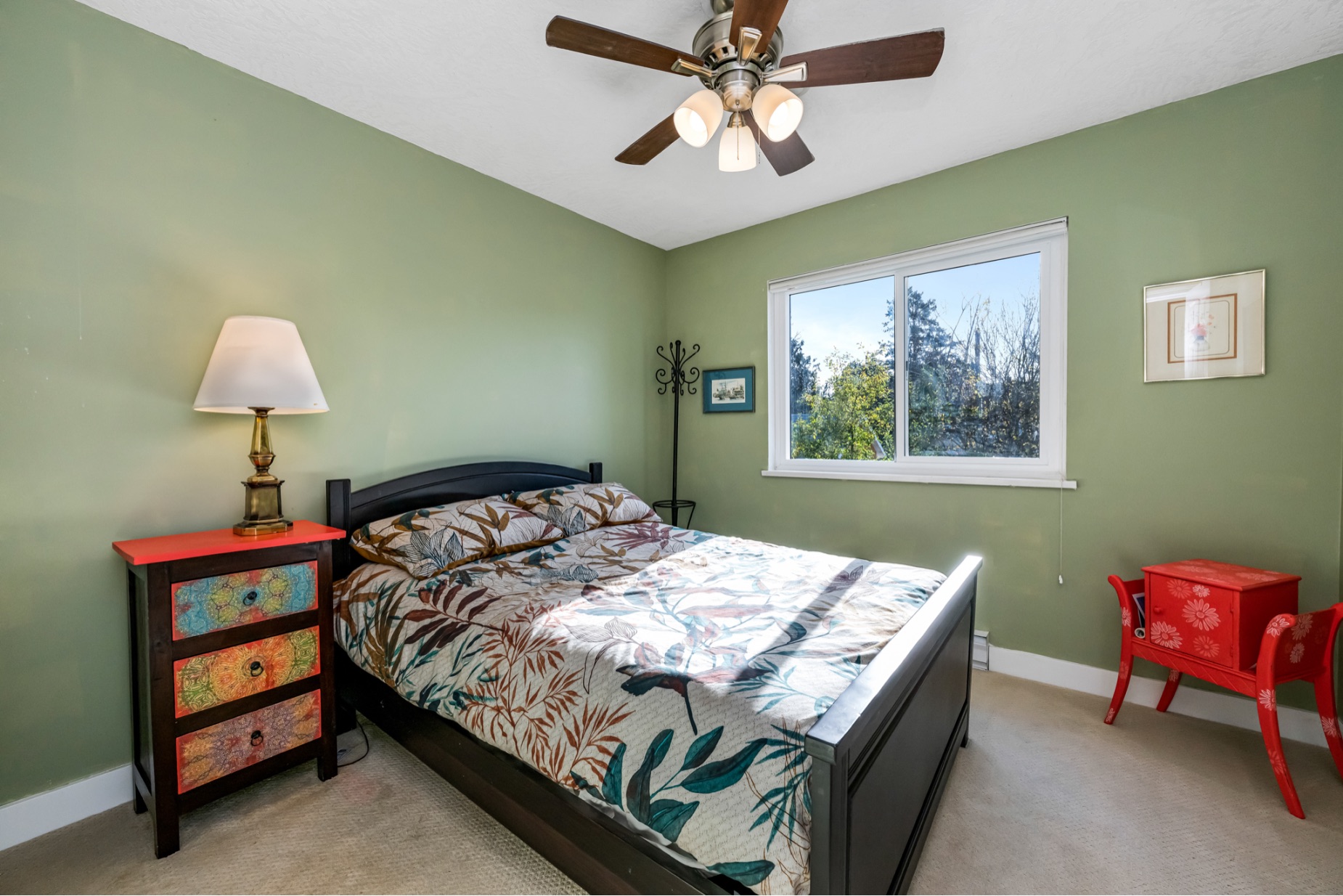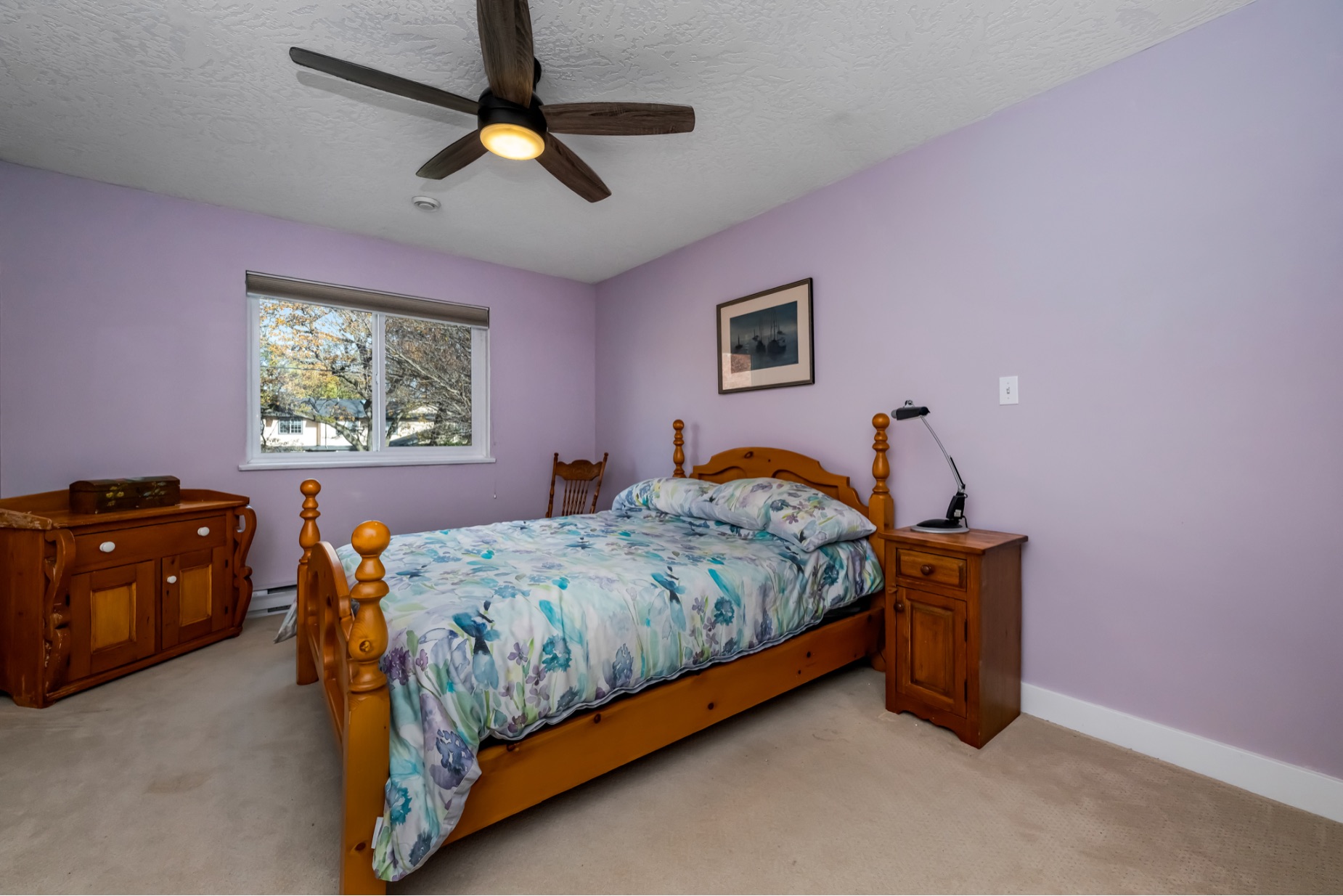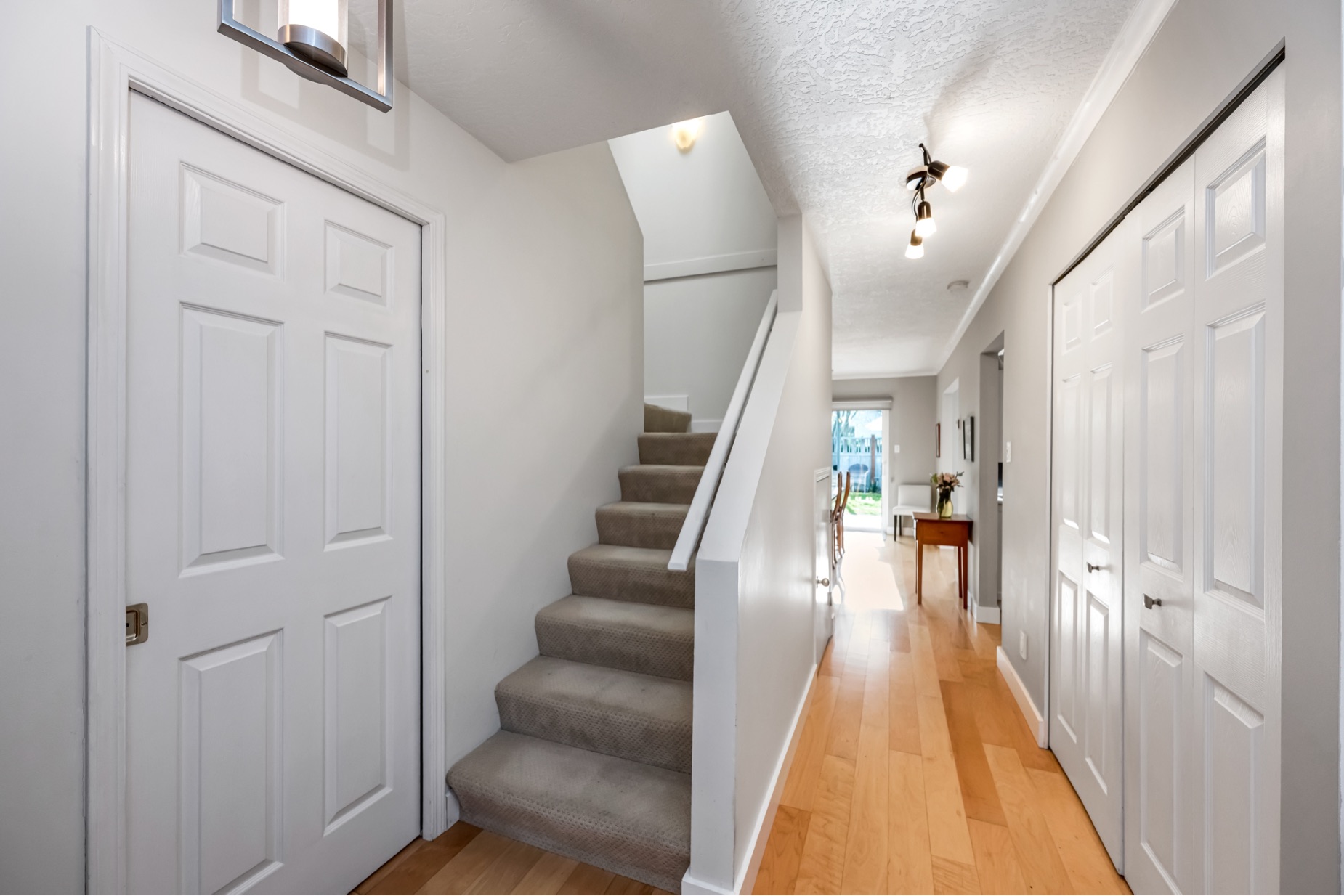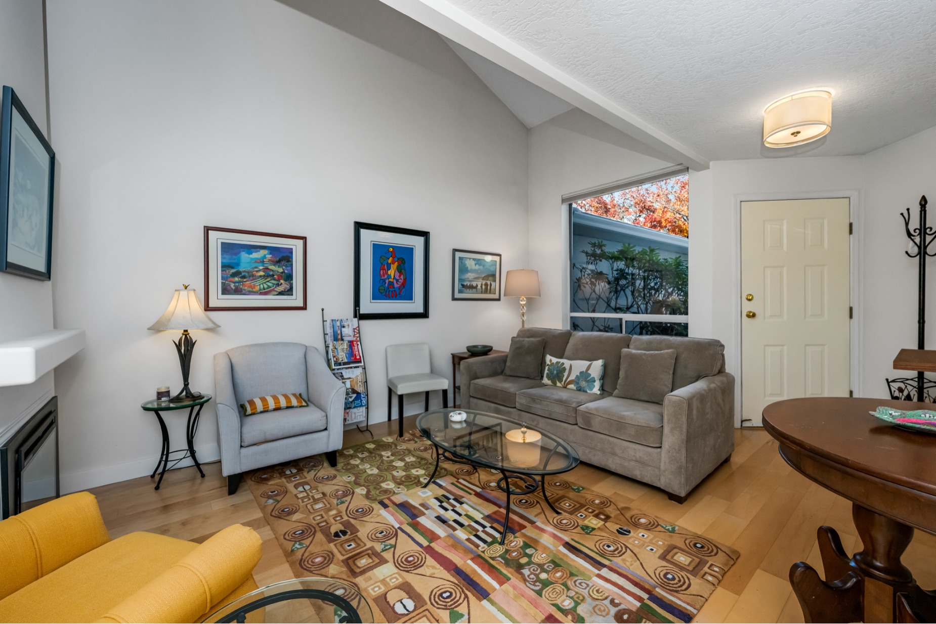 Fantastic 3 bedroom, 3 bathroom 1582 sq ft Townhome centrally located; close to Urban Grocer, Christies Pub and everyone's favourite, Goodside Pastries. Set back from the road this 2 level home is quiet and peaceful with a glorious south facing patio and garden. You enter into the cozy living room with new electric fireplace (gas available) and vaulted ceiling. Beyond the living room is the open kitchen, family room and dining room with patio doors to the back patio. Also on the main floor you will find the large laundry room/mudroom just off the garage & 2 piece bathroom. Upstairs are three bedrooms (primary with WI closet and ensuite (heated floors)) and a guest bathroom. The current owners have tastefully renovated their home over the years - new maple hardwood, new carpeting and paint throughout; new cupboards, quartz counters, backsplash and stainless appliances in the kitchen; bathrooms with porcelain tile. Homes in this 6 unit strata don't come available very often so make haste